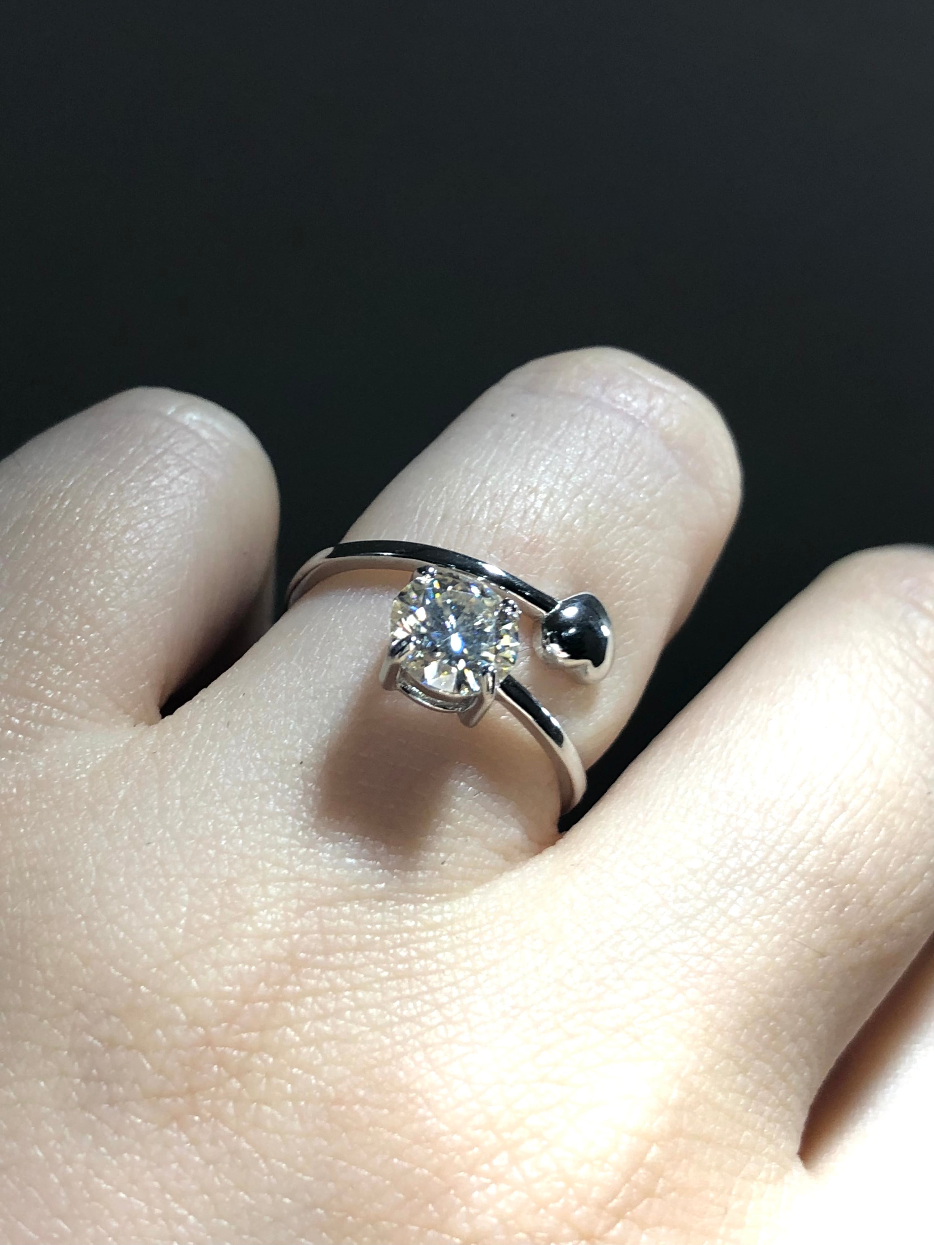 モアサナイトは、宝石の輝きを表す「ファイア」においてダイヤモンドの2.5倍で、皮脂などが付着しやすいダイヤモンドに比べてそれも少なくメンテナンスもしやすいそうです。もちろん硬度も高いそう。
