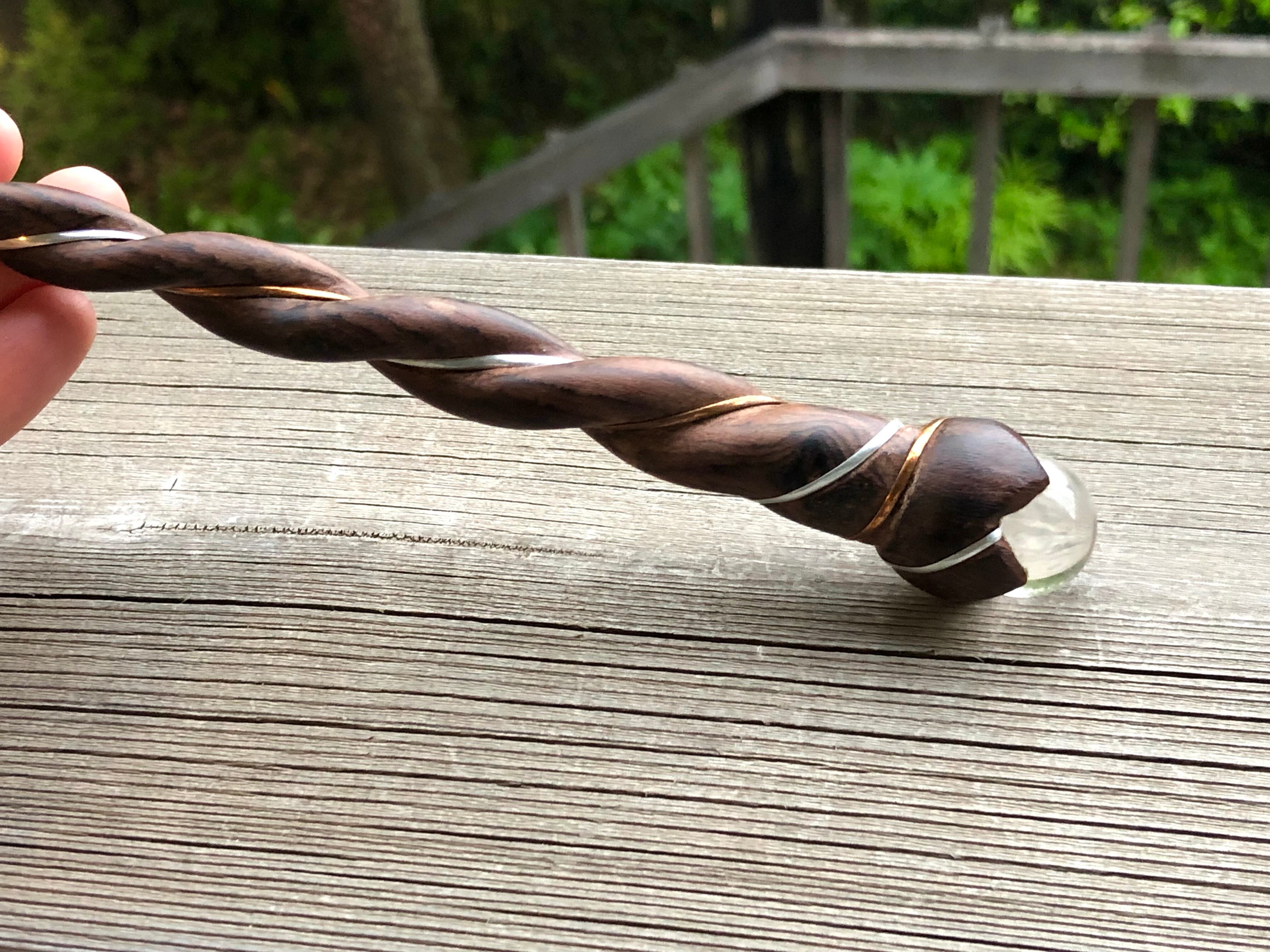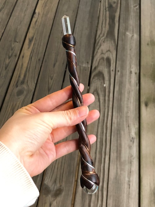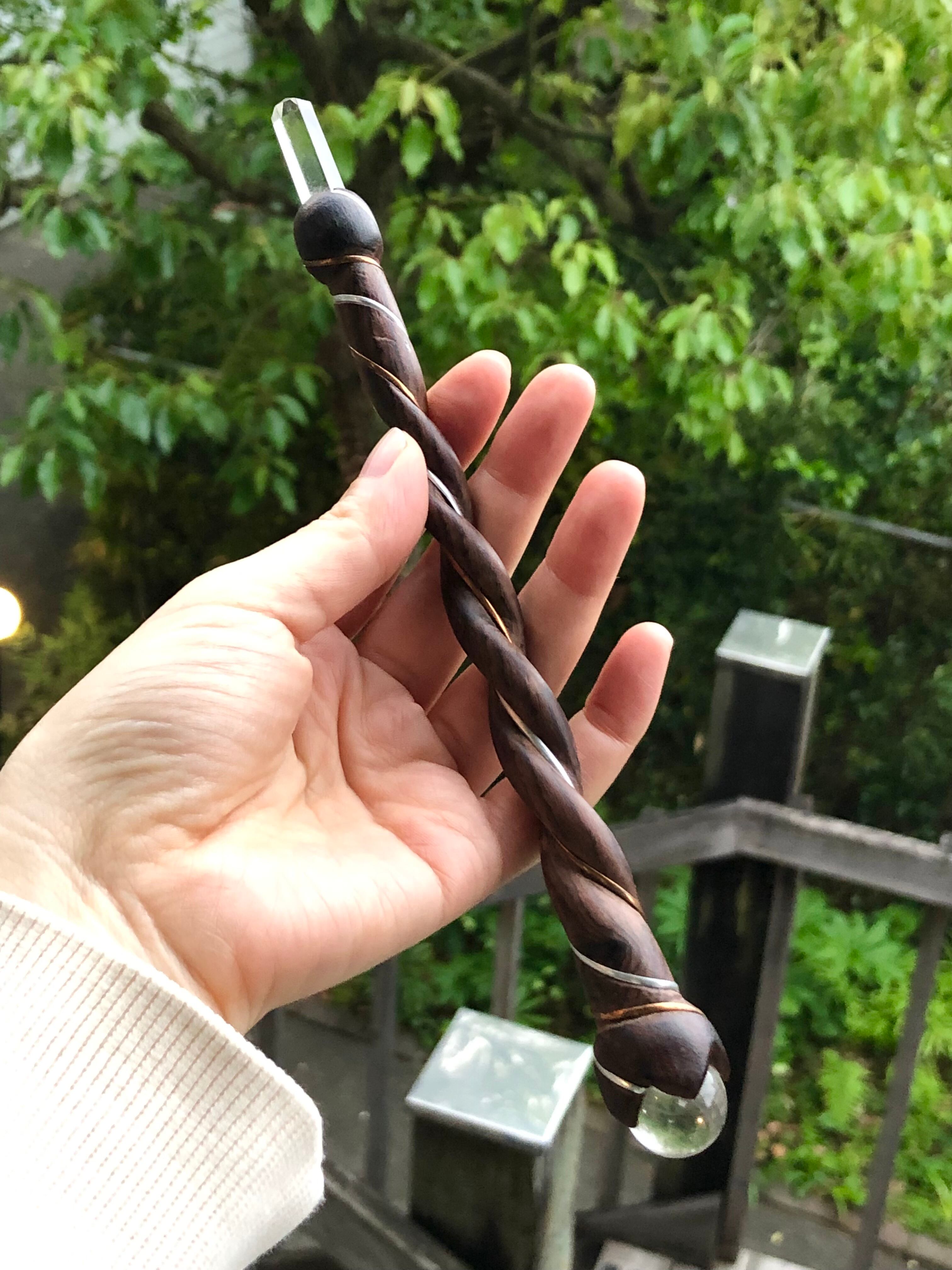 木の部分はローズウッド、先端のポイントと丸玉は水晶です。