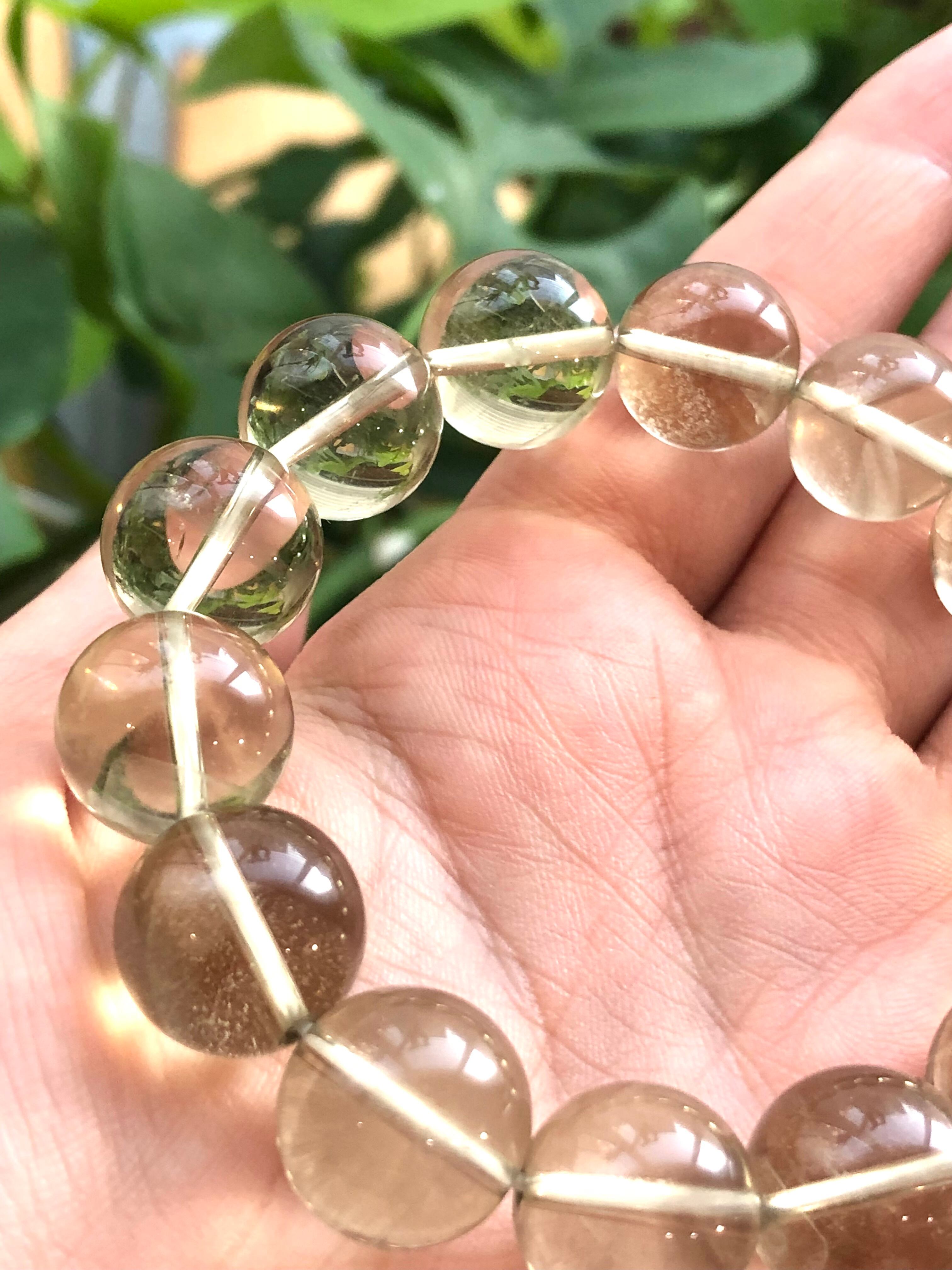 こちらは何年も前に私がクリスタルヒーリングの師匠から譲っていただいた、天然シトリンでファントム入り、そしてマスターでもある12ミリ玉のブレスレット。