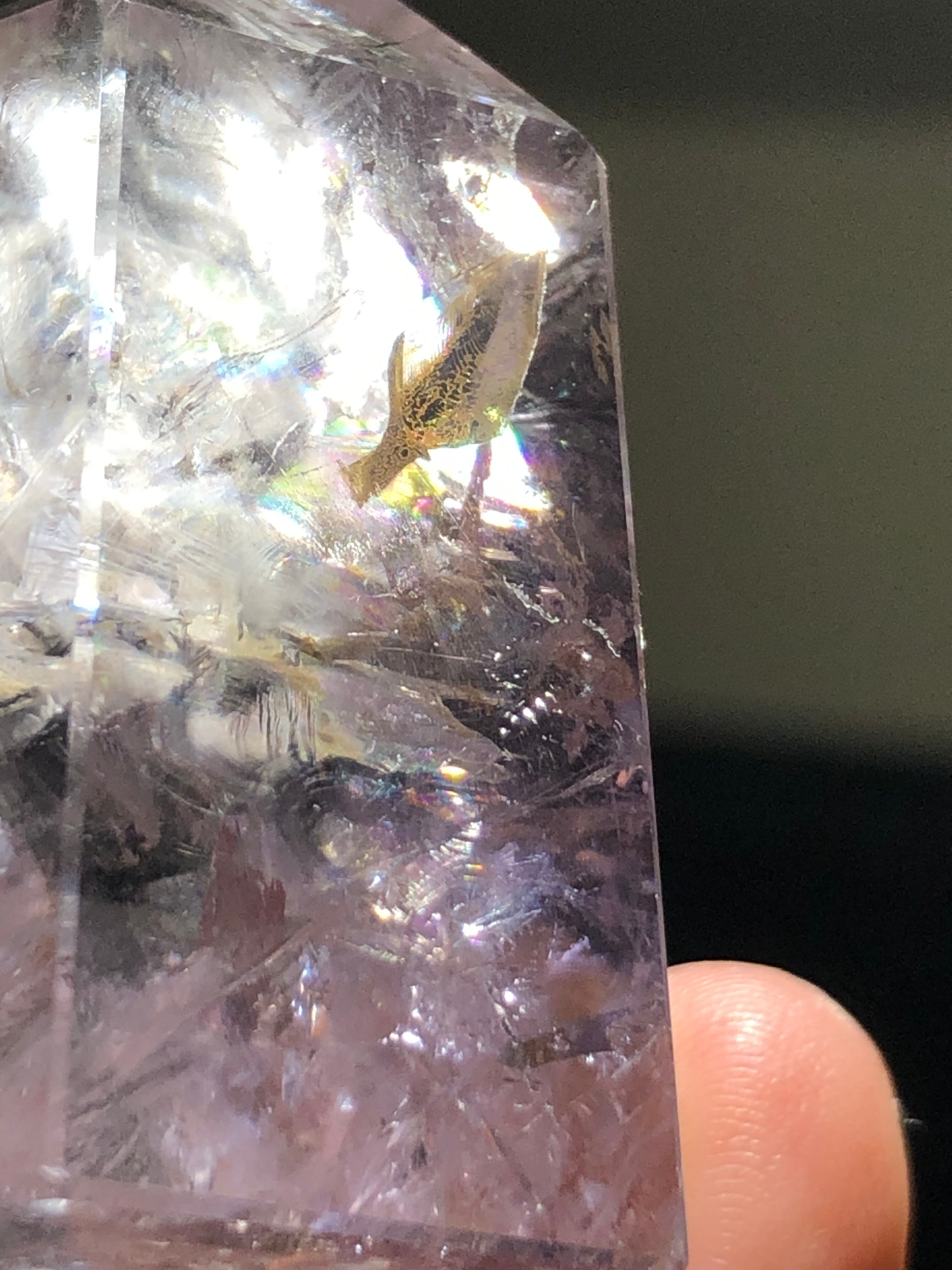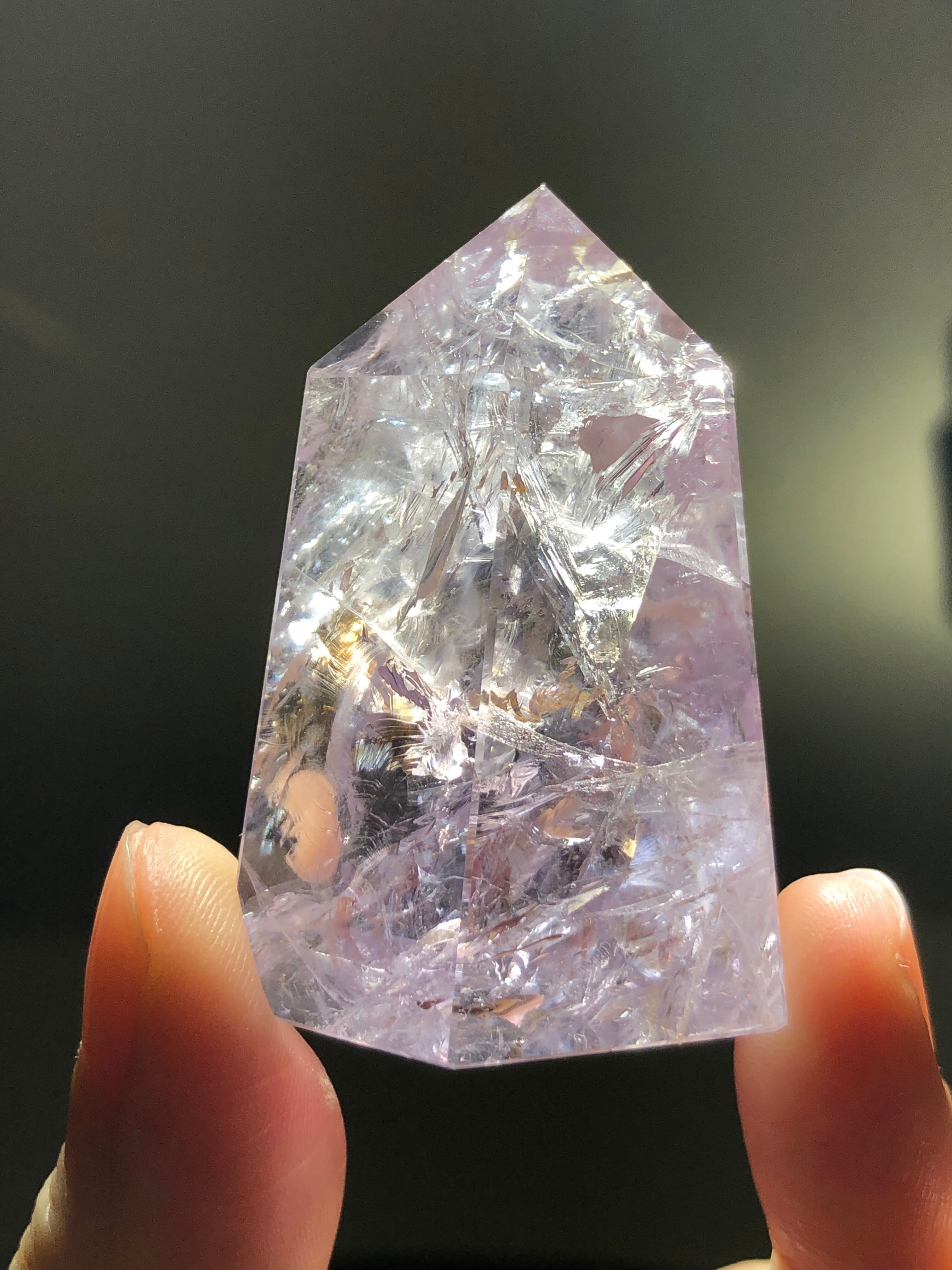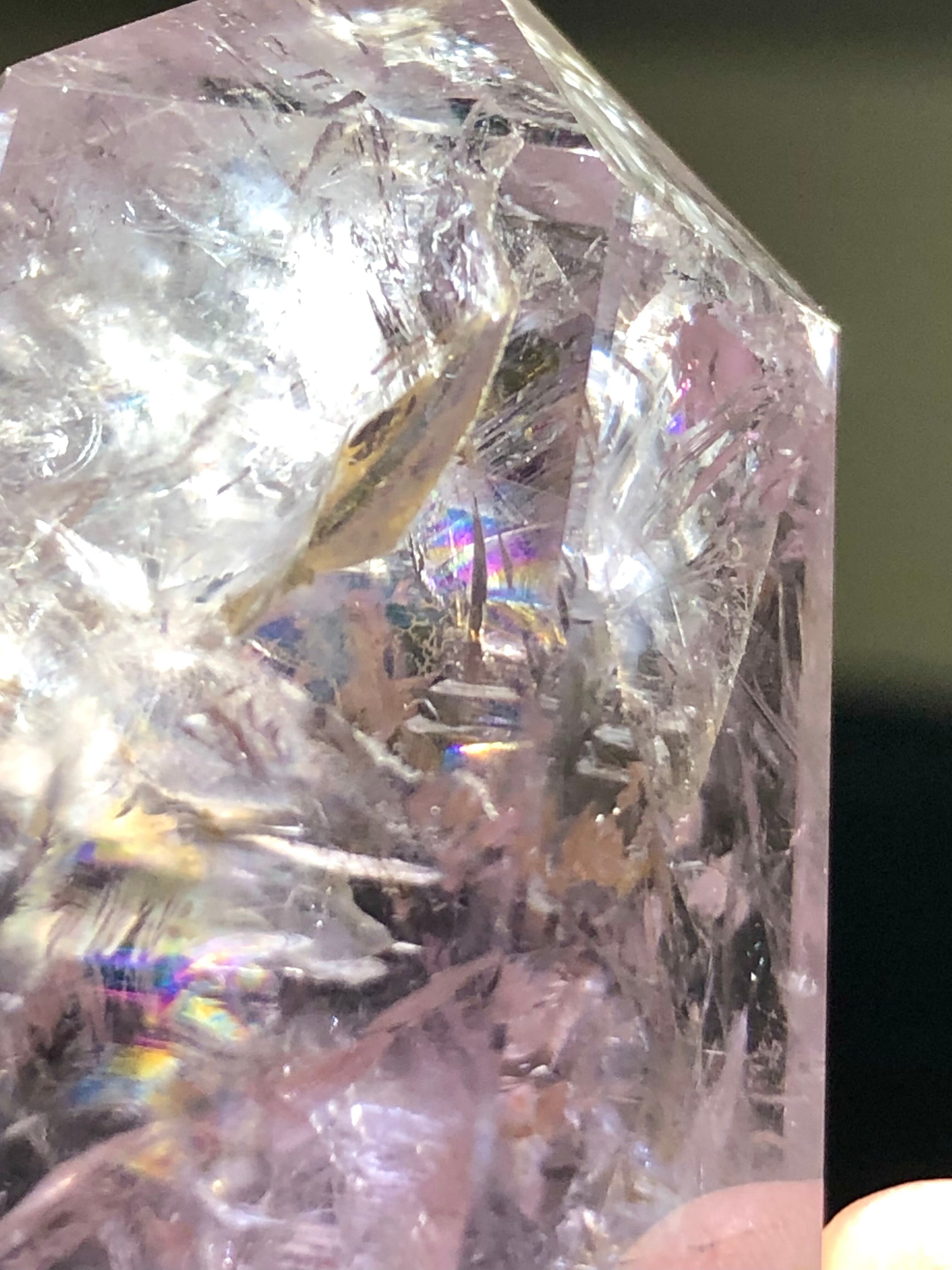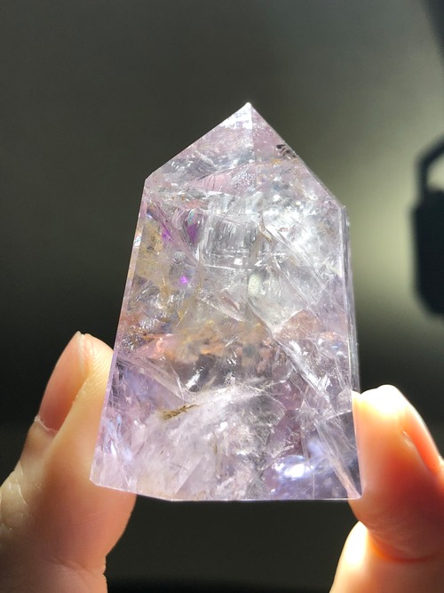 淡いラベンダー色のアメシストですが、ここまで虹がキラキラと見られるものはなかなか無いかもしれません。