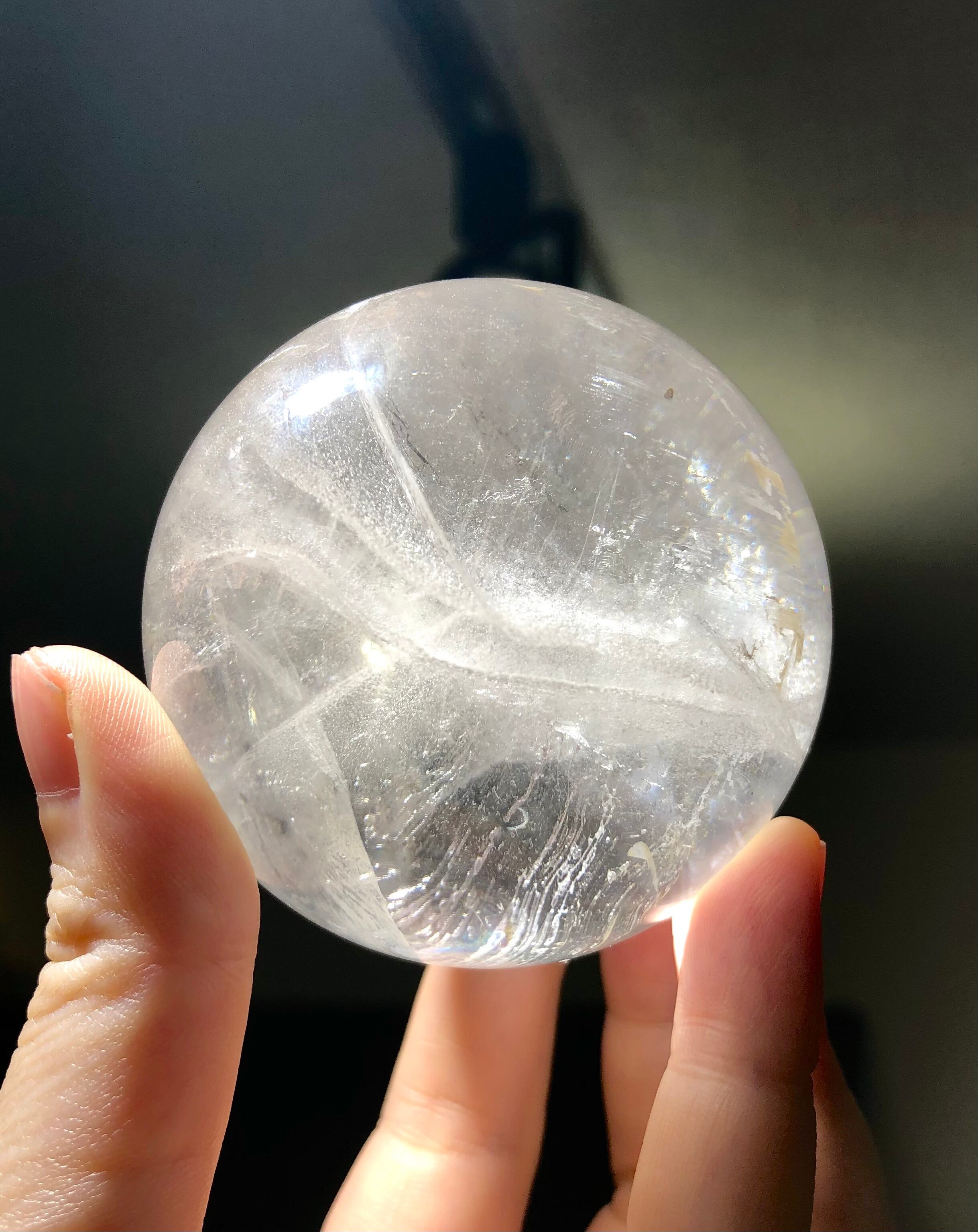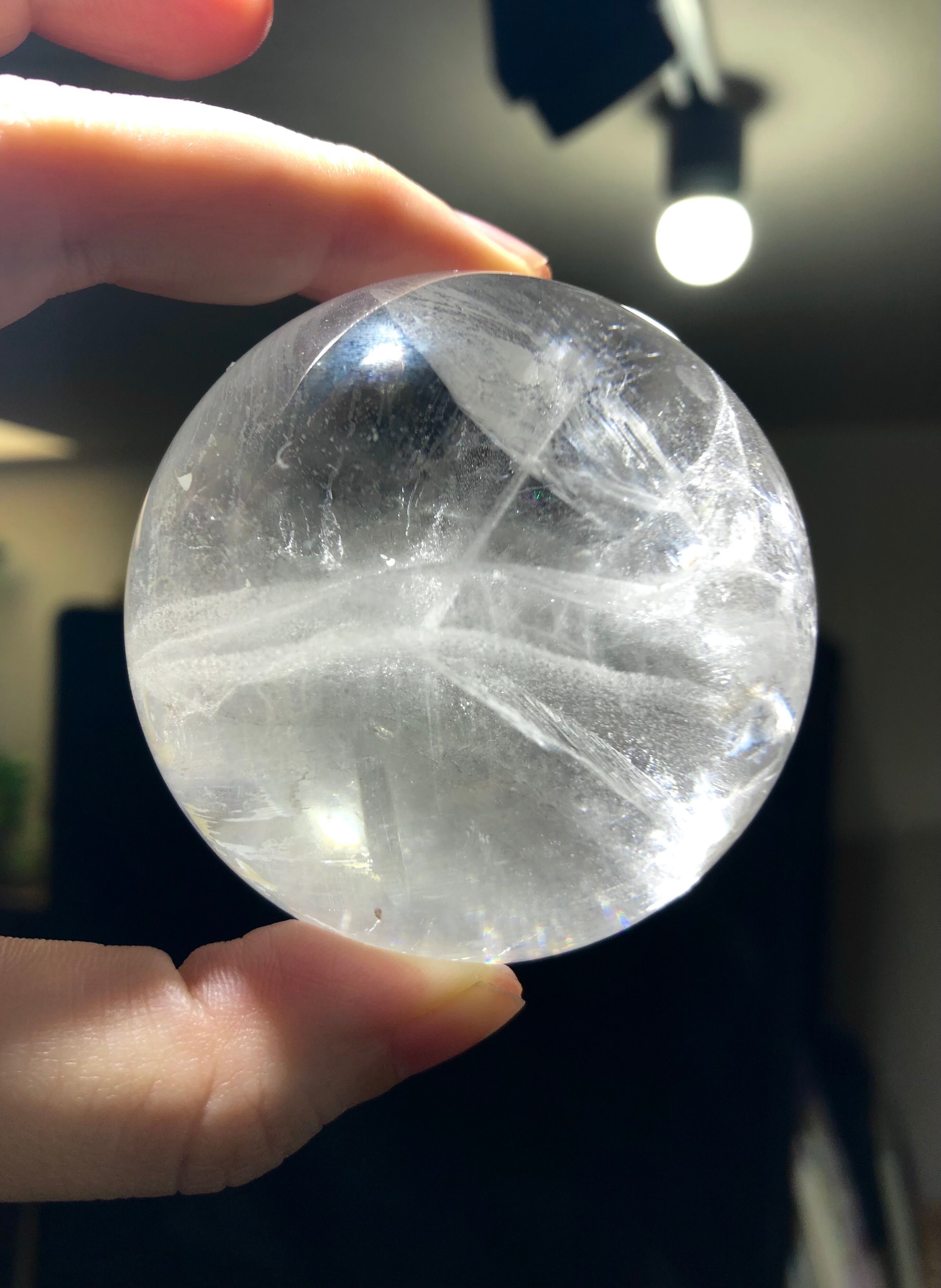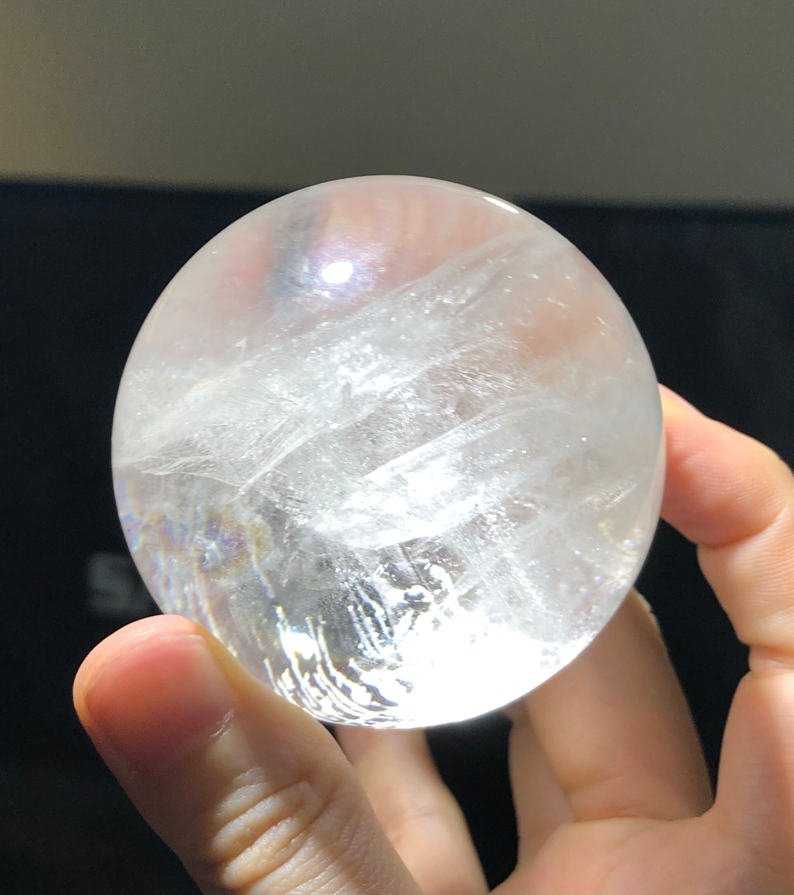 写真ではほとんど写すことができませんでしたが、実物は光にかざすとあらゆる光が見られて、虹も見られ、『生きている煌めき』『宿っているエネルギーの動き』をしっかり感じられます。