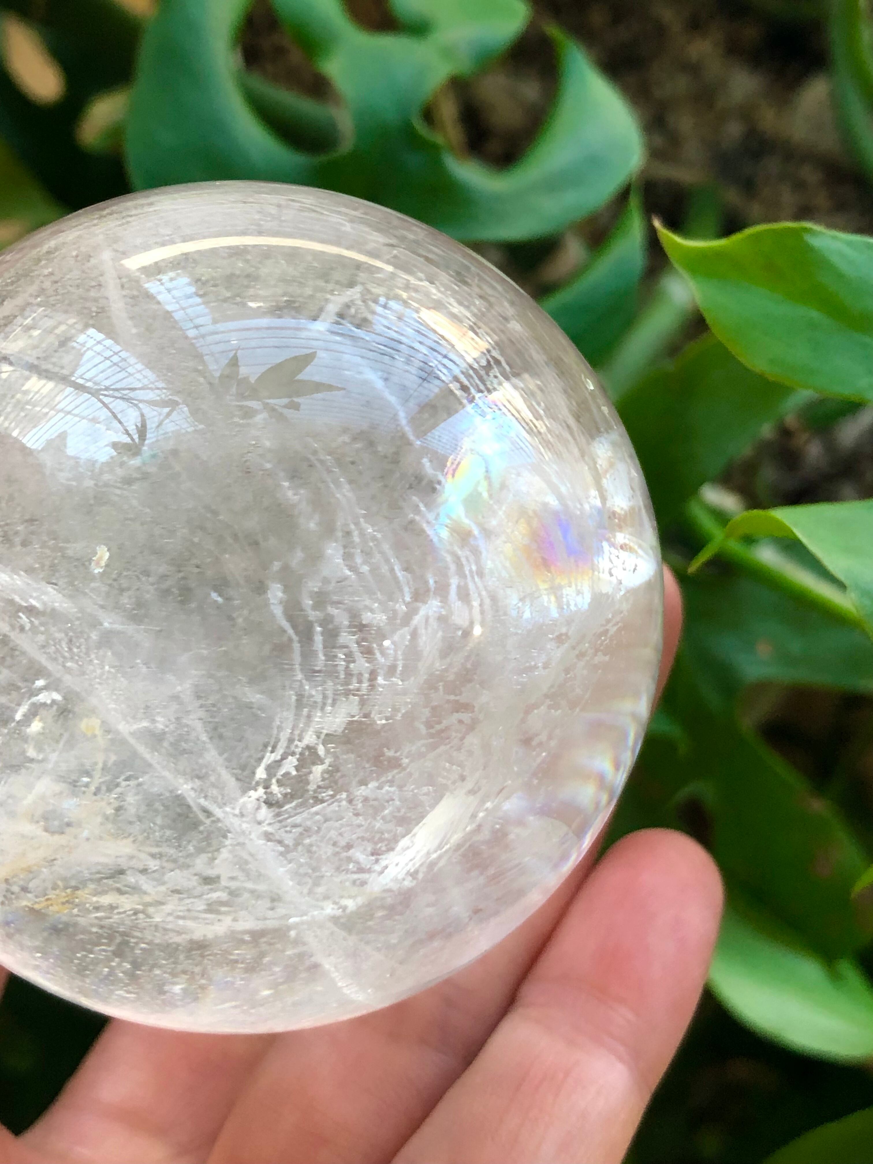 こちらは大変素晴らしいエネルギーのブラジル産水晶60mm玉。