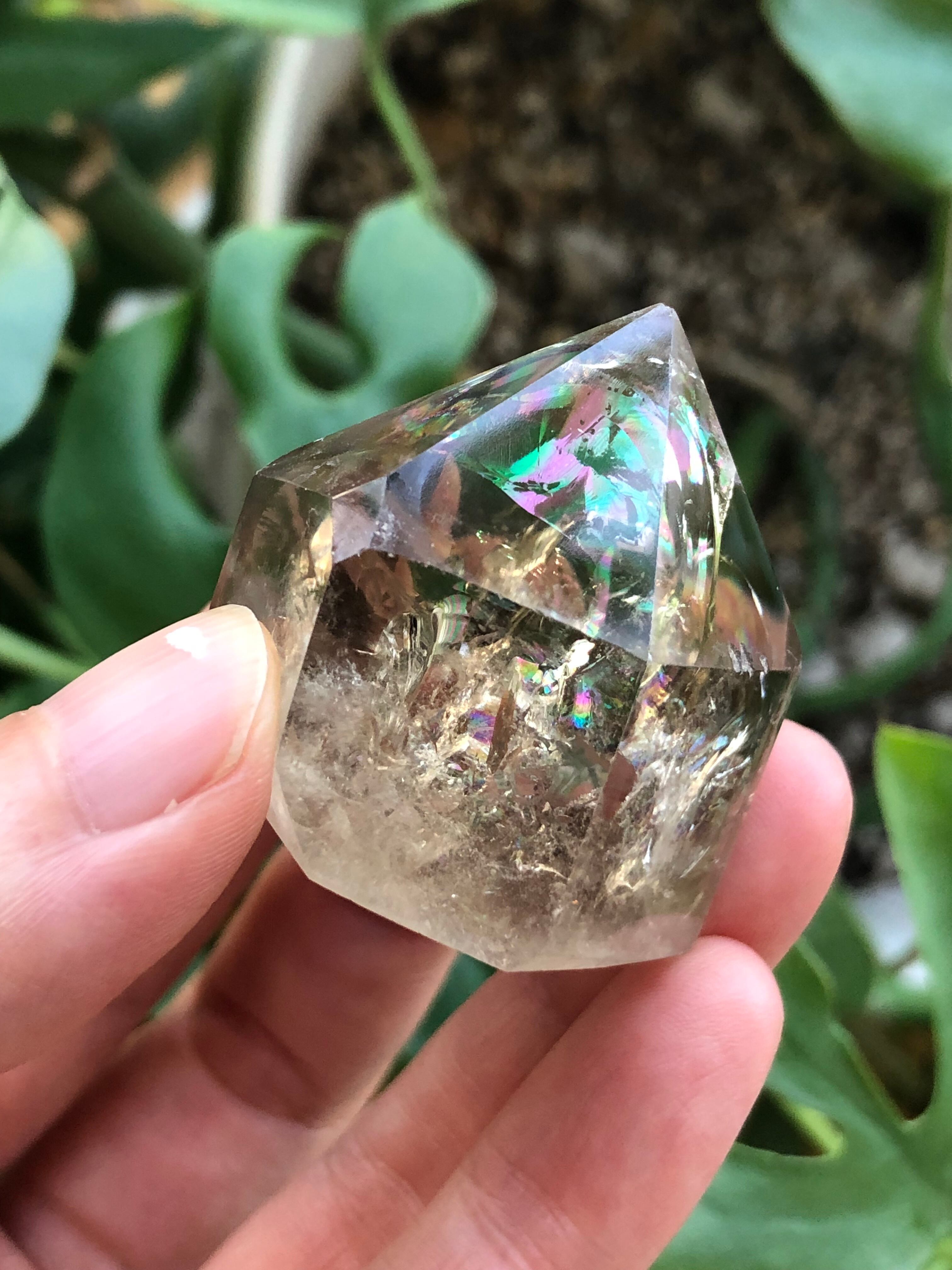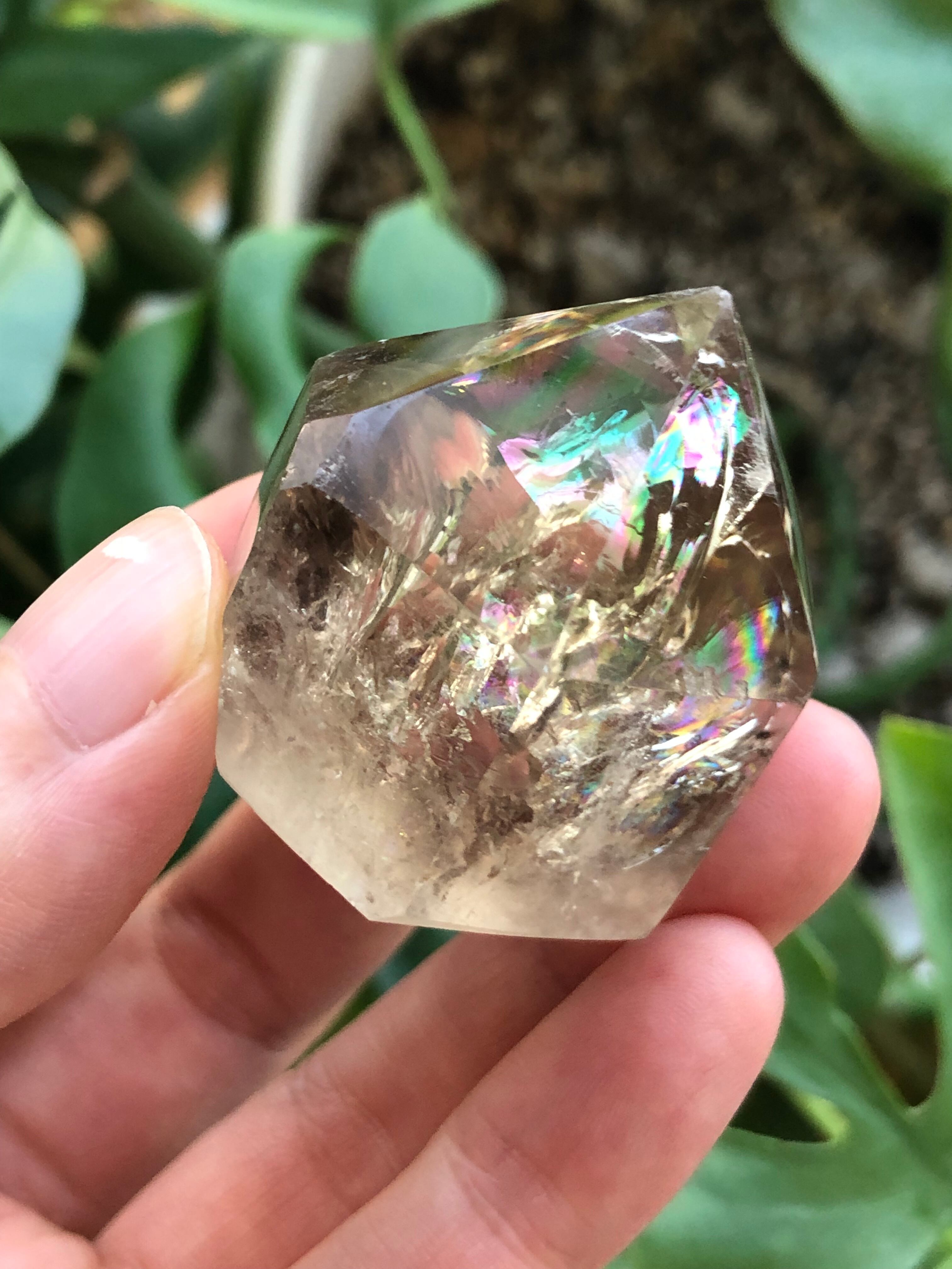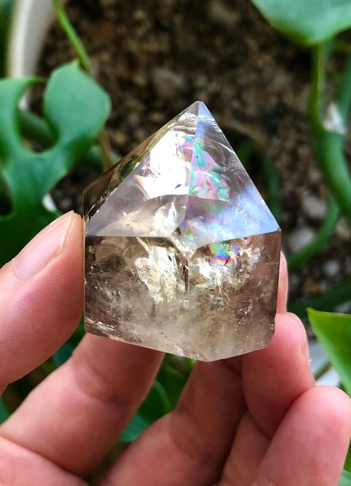 ほぼ虹で構成されたこの水晶は、「あなたは輝いて生きているか」と愛からの問いかけをしてくれます。