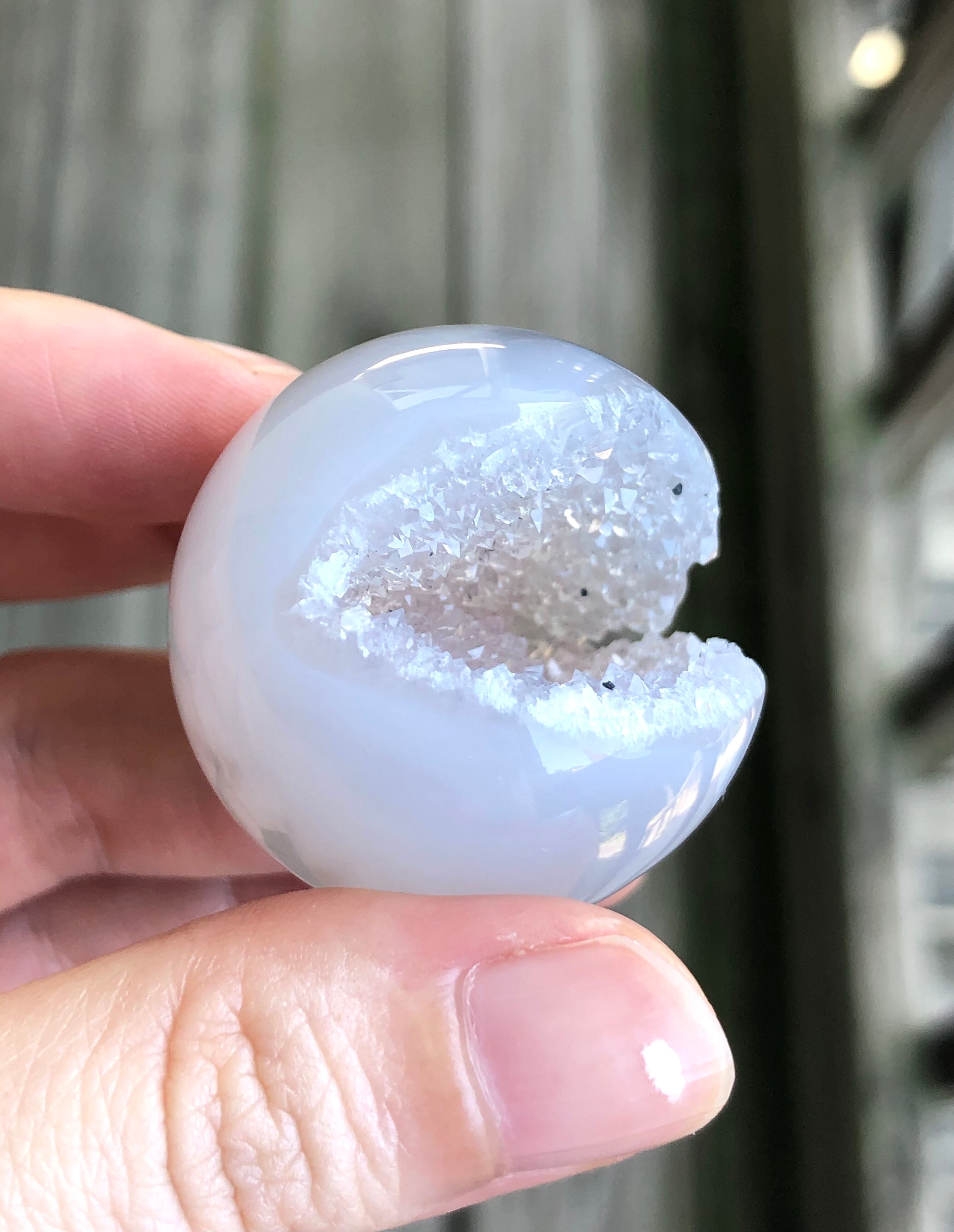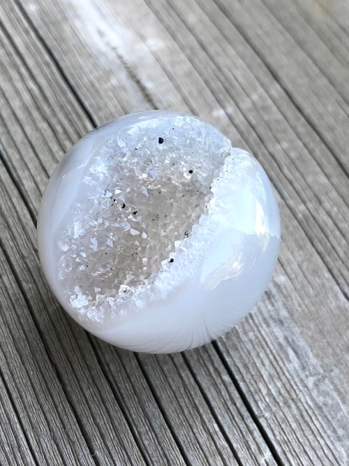 今回やってきてくれたコミカルな面持ちのこの子は、やはり瑪瑙のジオードらしいピュアな澄んだエネルギーで、サイズは小さいですが、眺めていると水のエネルギーでエゴが少しずつ洗い流されるような感覚を覚えます。