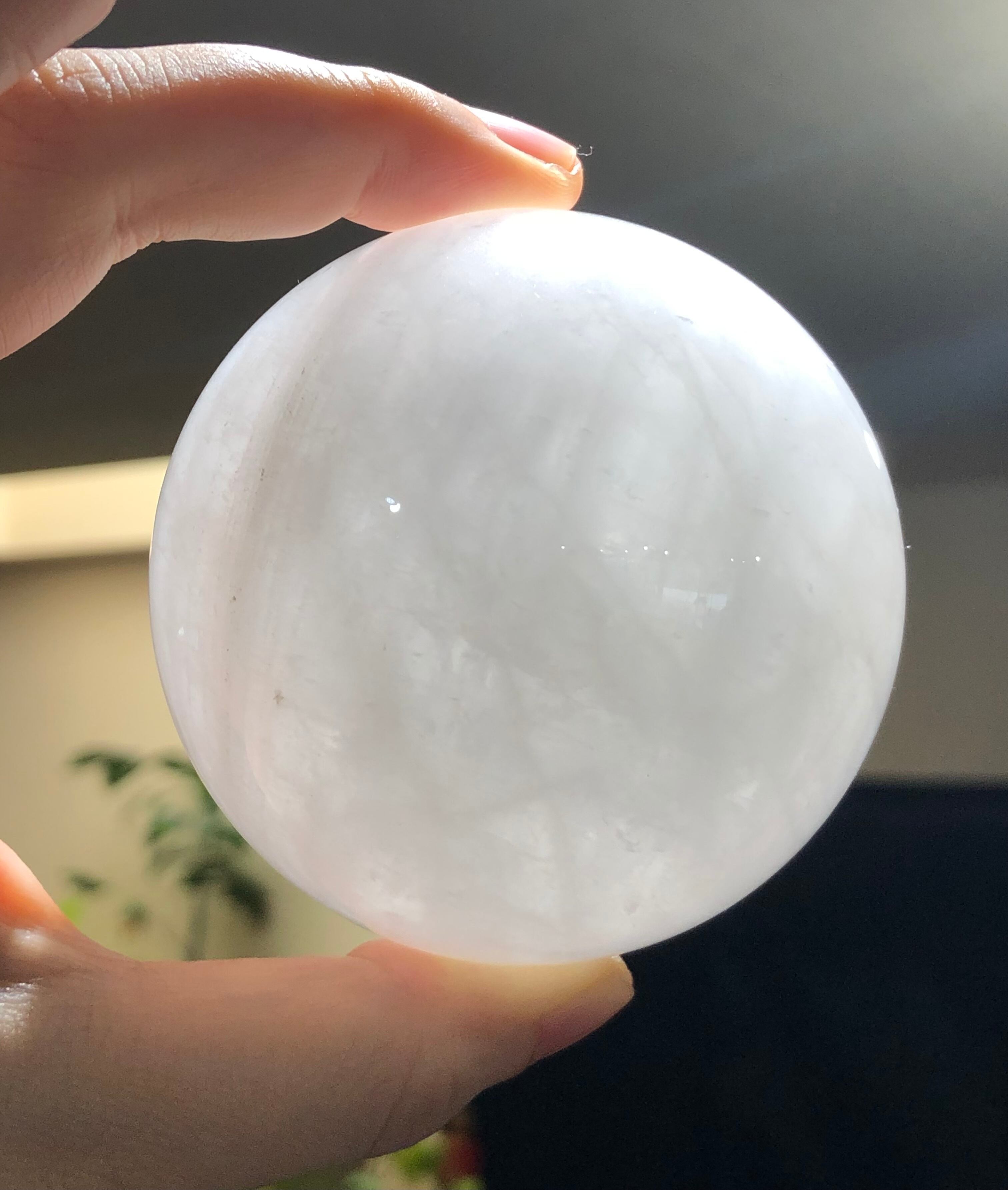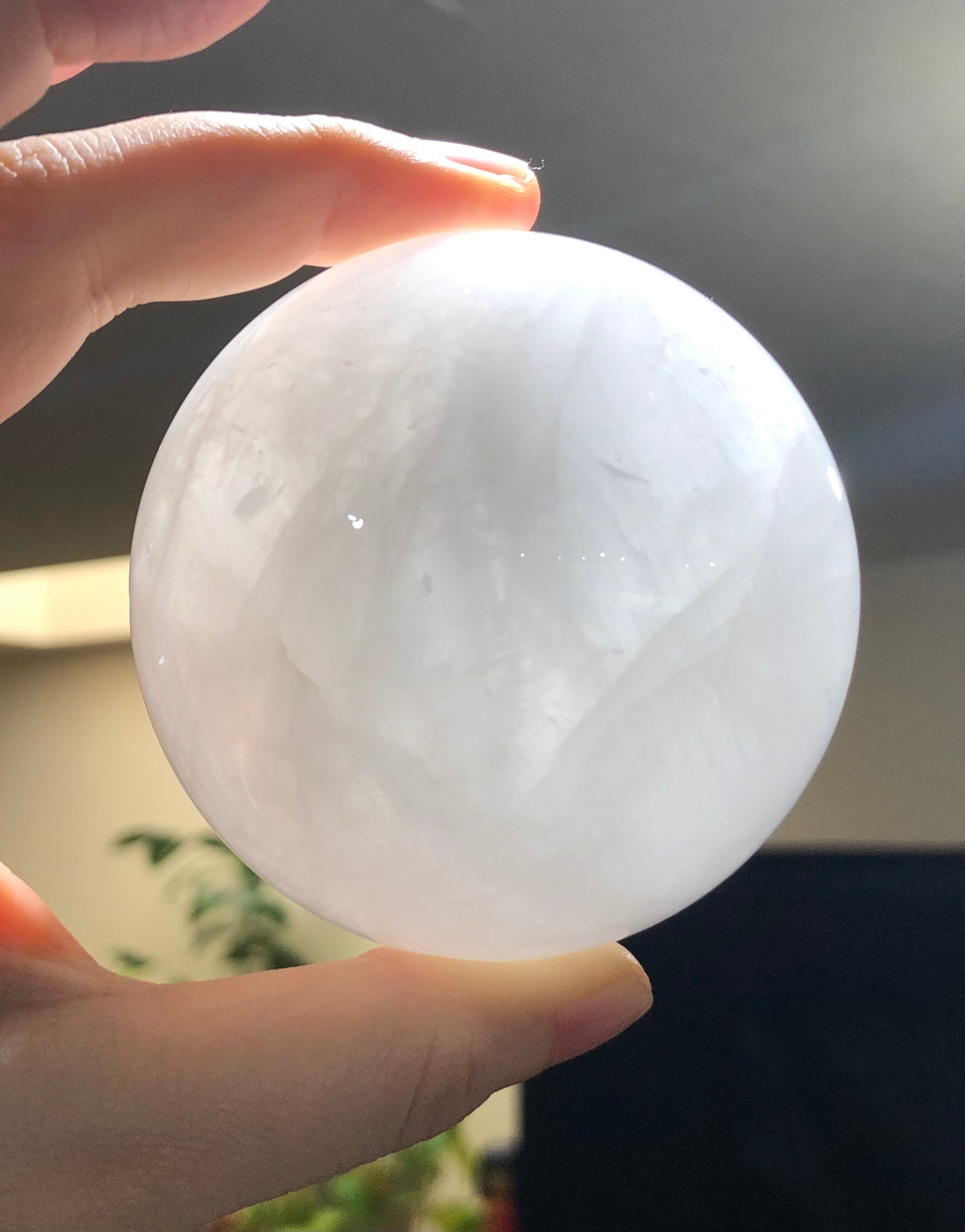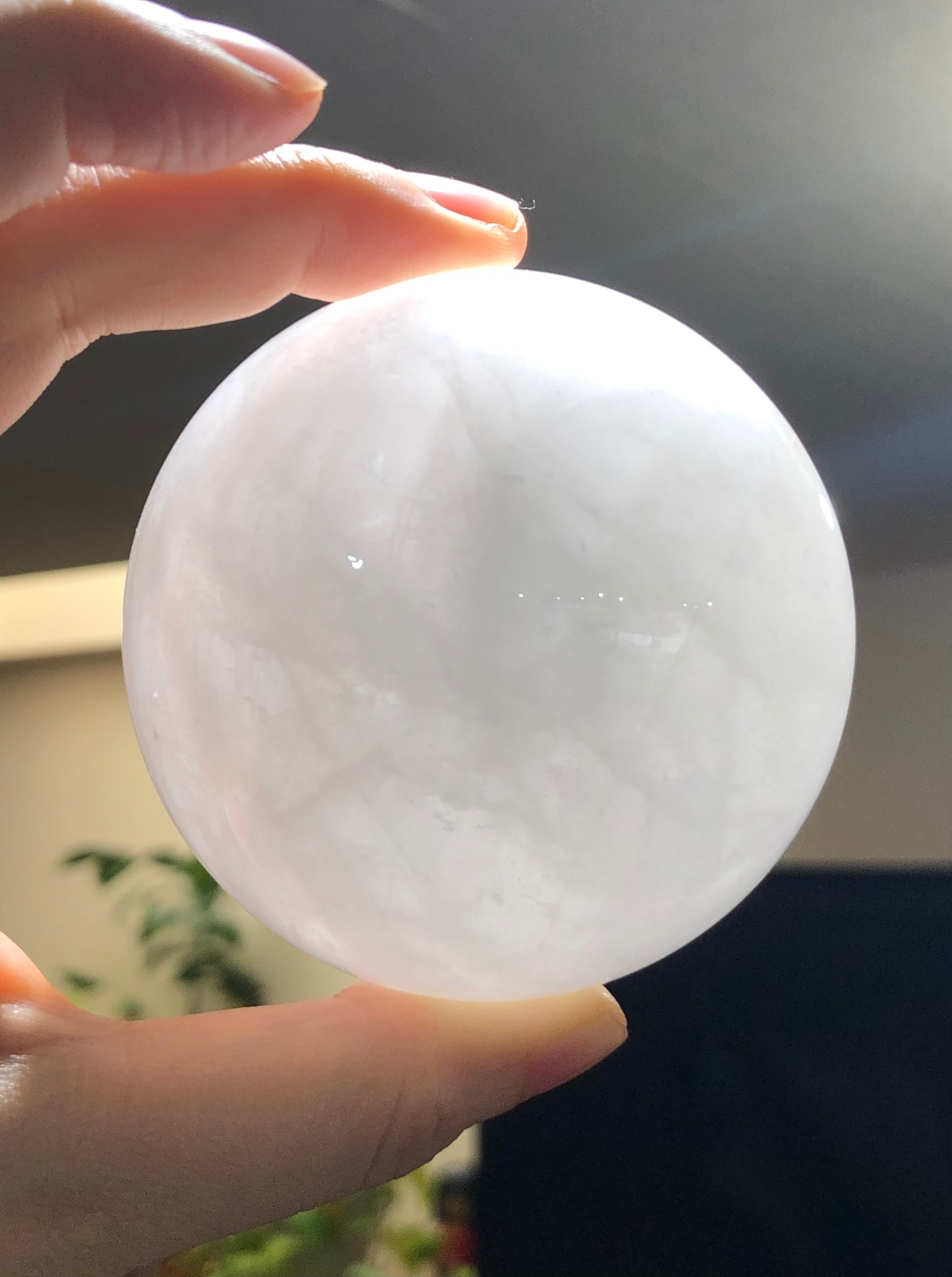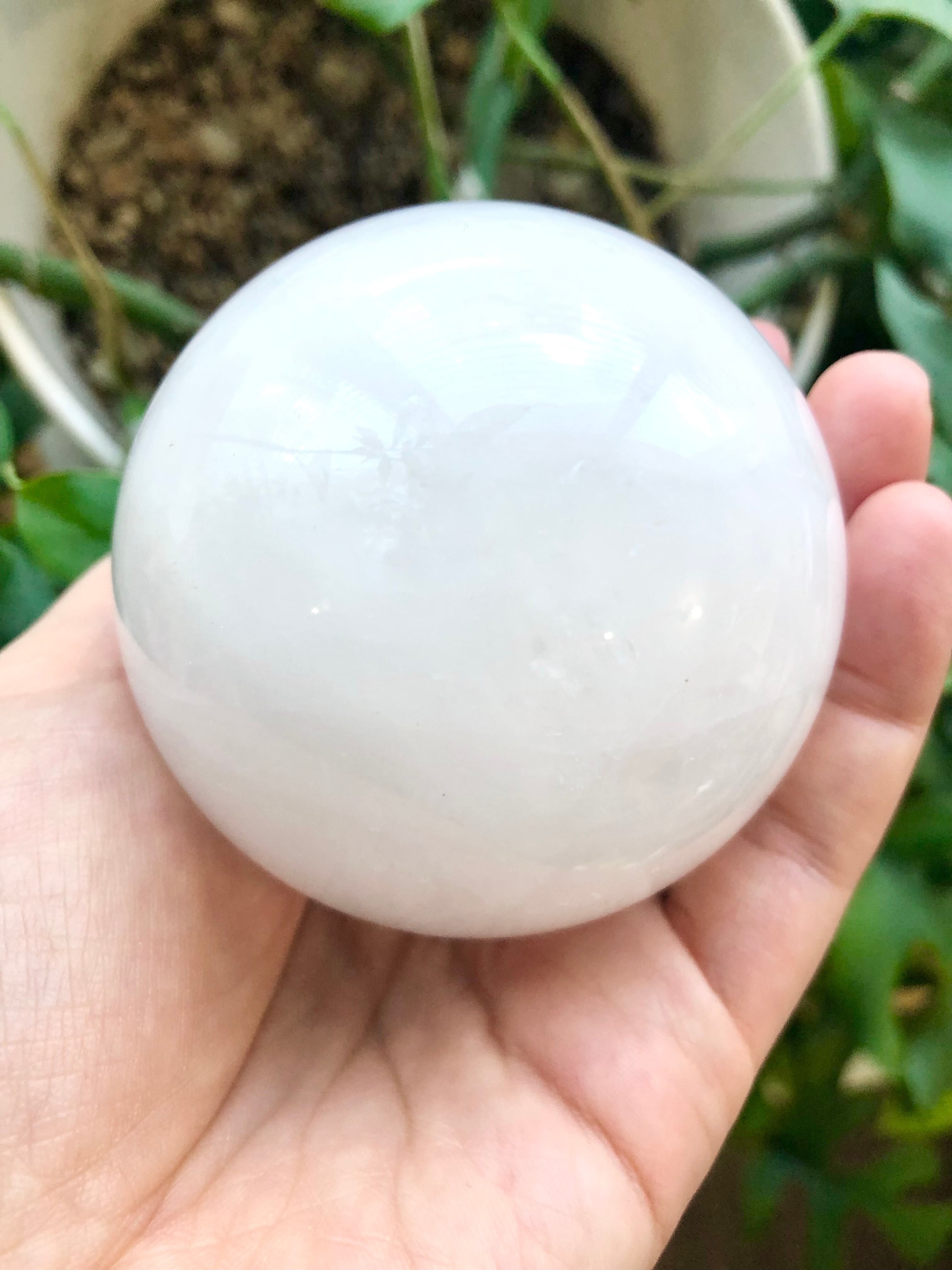 いわゆるスノーホワイトとも言われる白色の水晶の丸玉です。