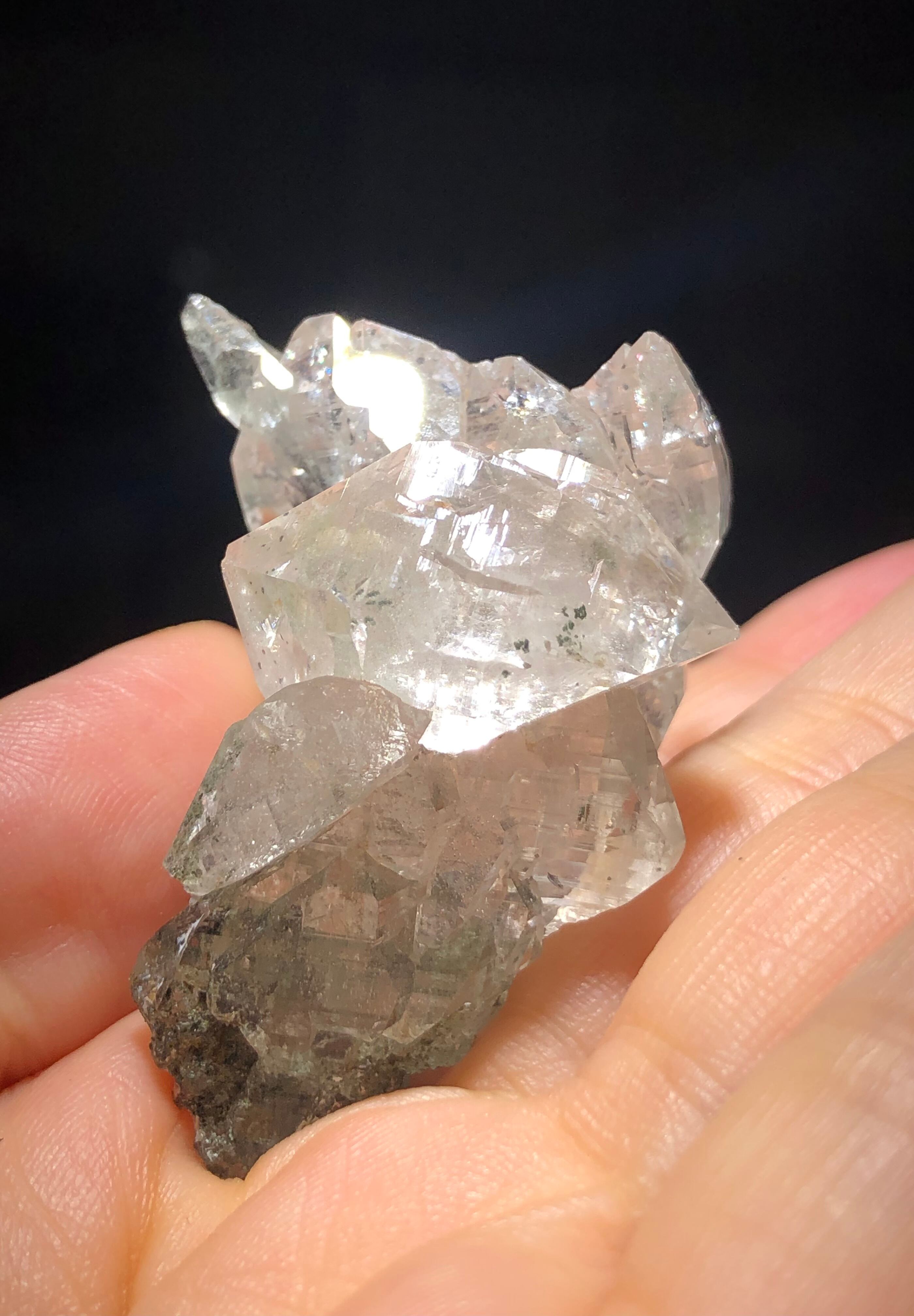 今回は、前回よりさらに小ぶりのサイズですが、スピリットのキラキラしたエネルギーが惜しみなく伝わってくる(すなわちマスター)インドのマニハール産水晶です。
