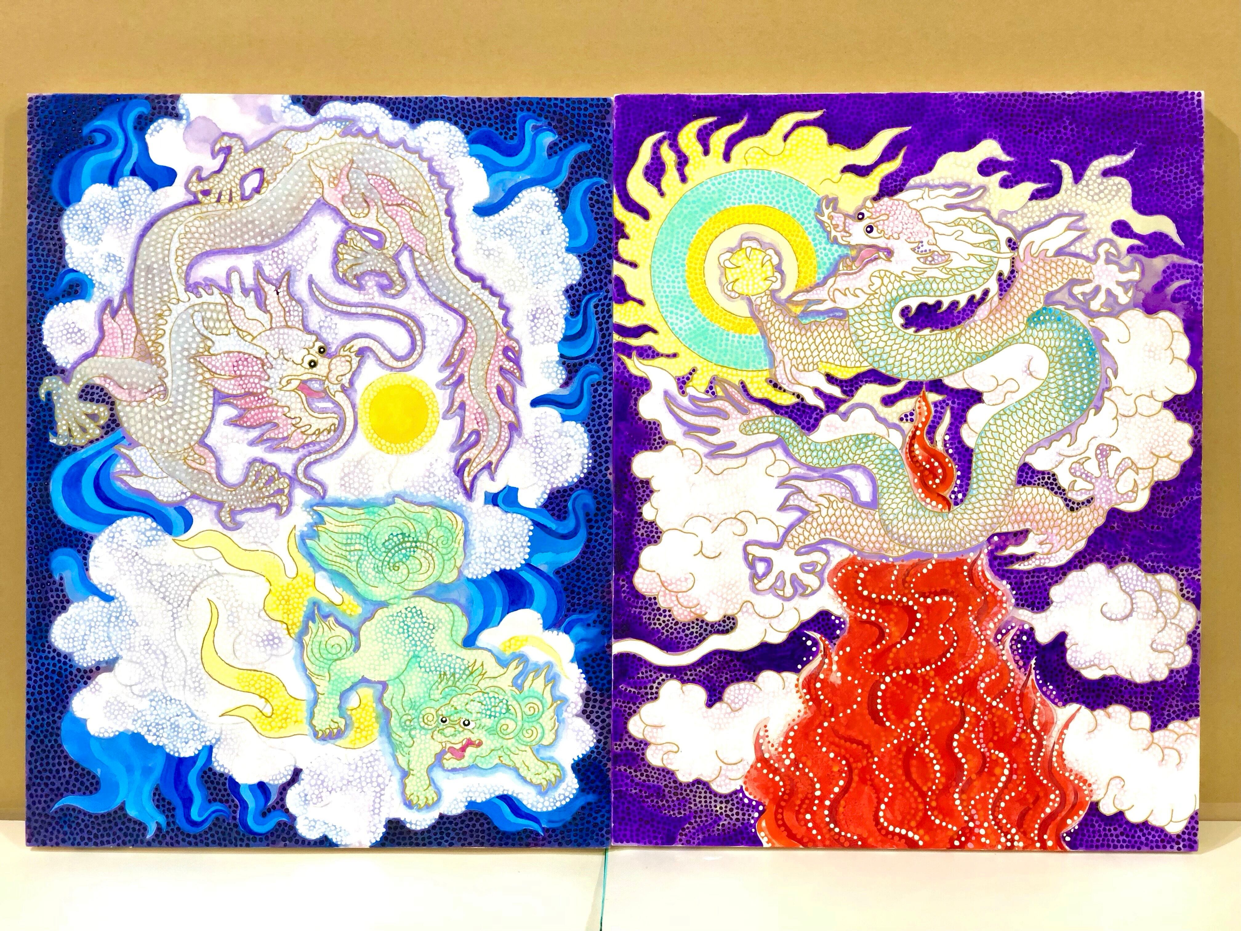 こちらは龍と炎と太陽を描いた作品です。
