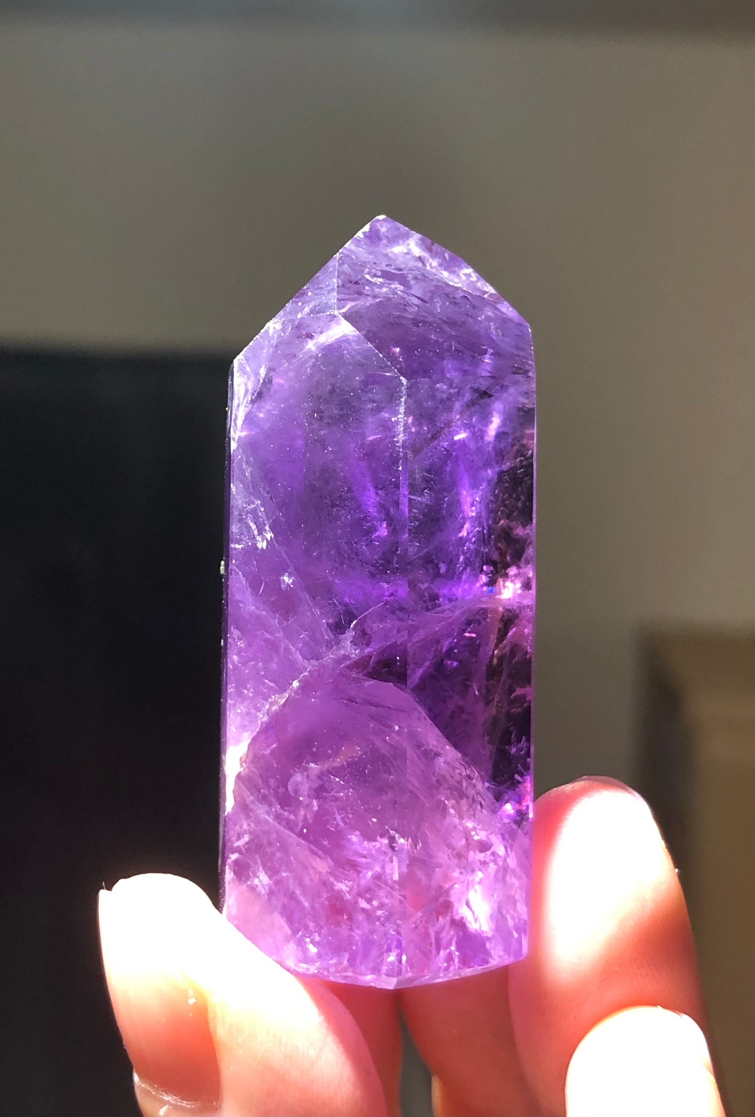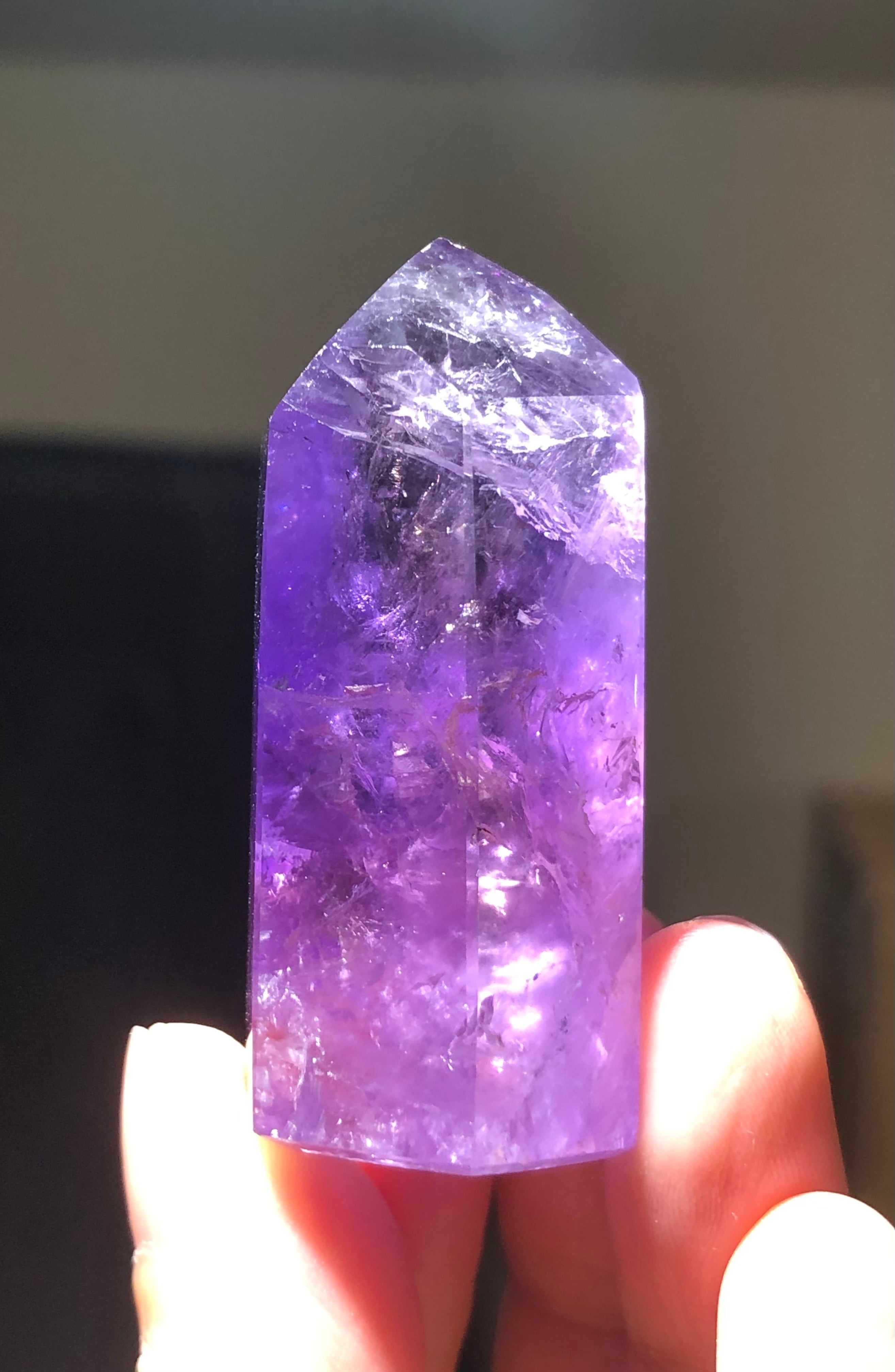 ぜひ陽の光にかざしていただきたいのですが、キラキラとした輝き、柔らかい美しいパープルが、なんだか女神さまのようでうっとりします。