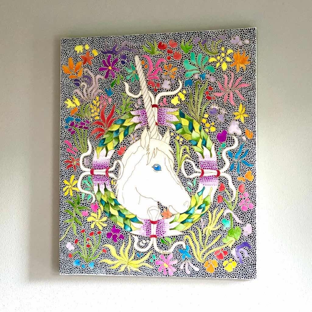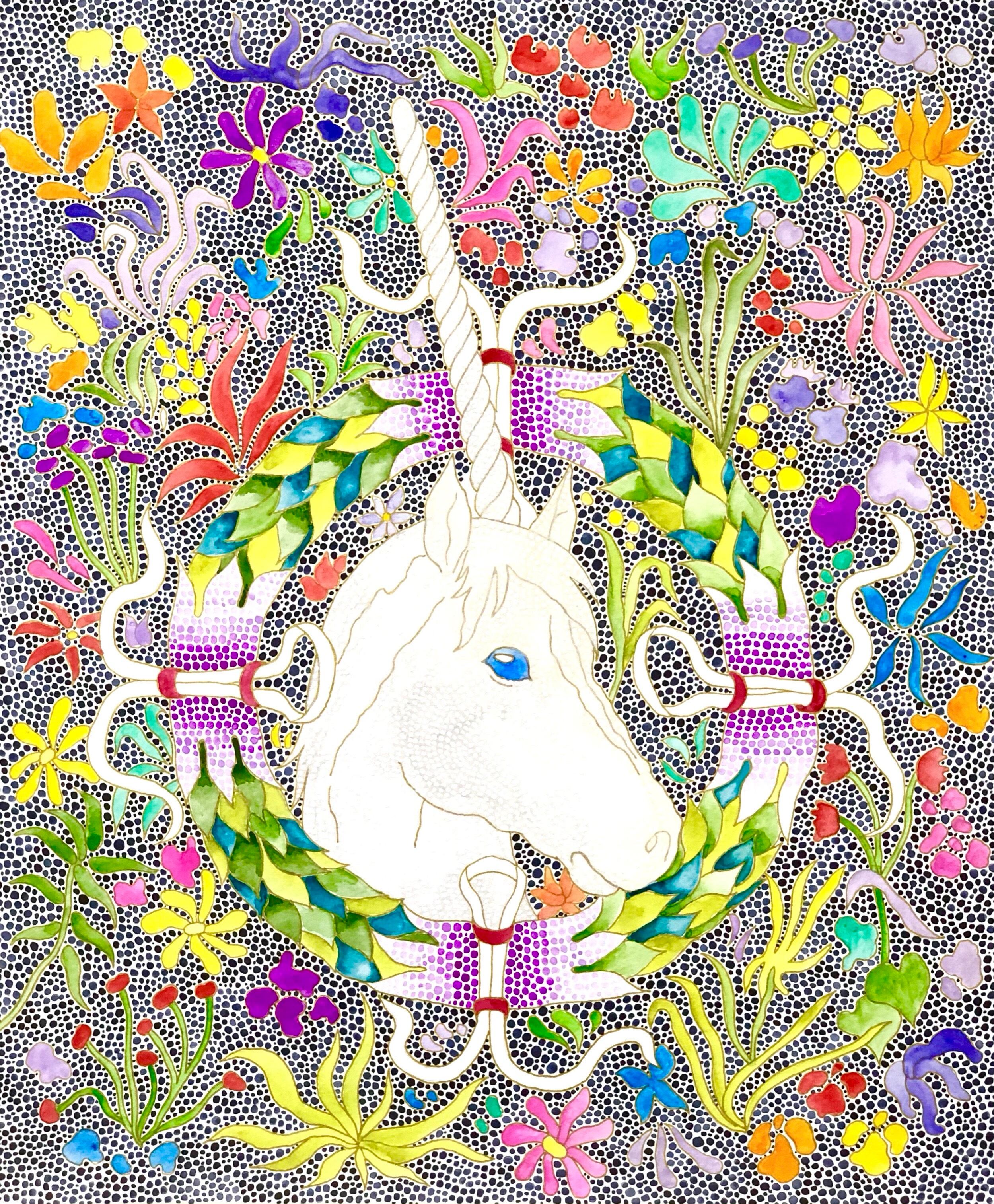 こちらはたくさんの植物とユニコーンを描いた作品。