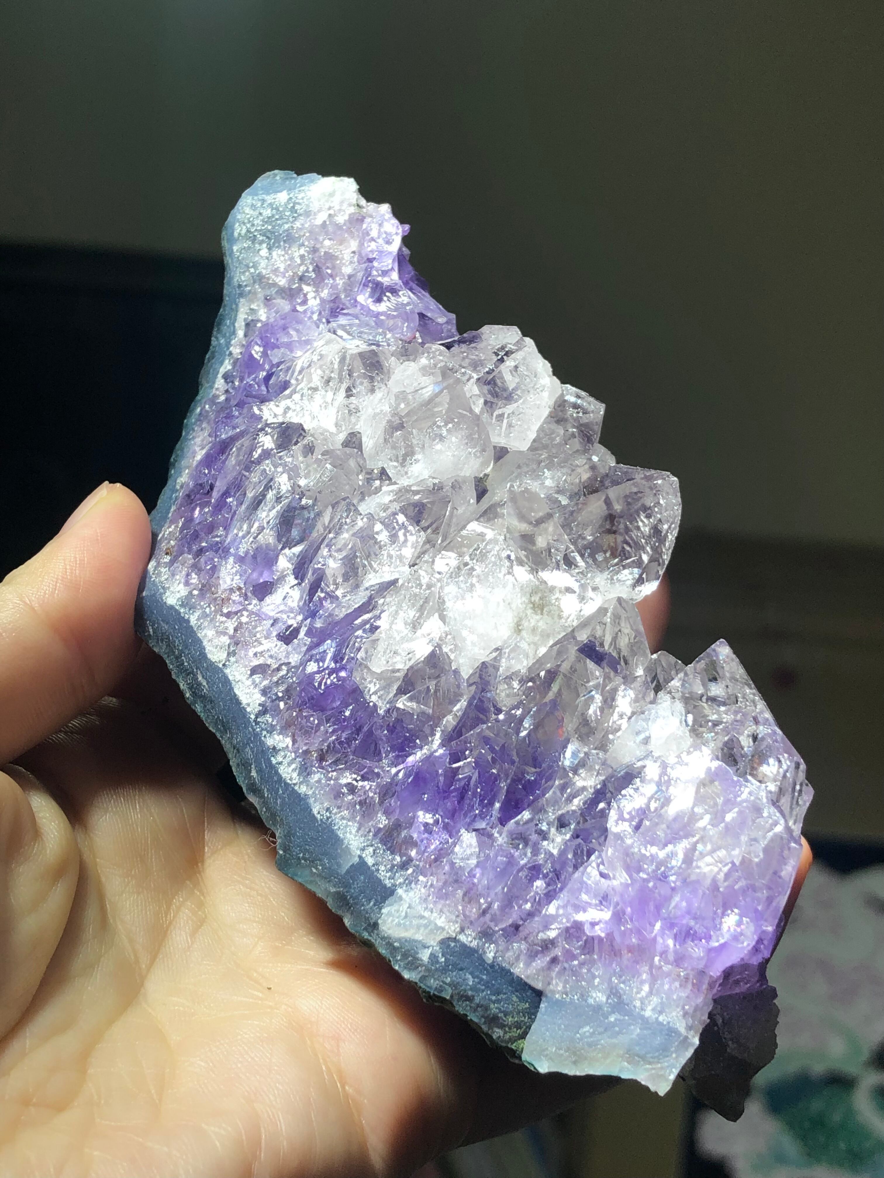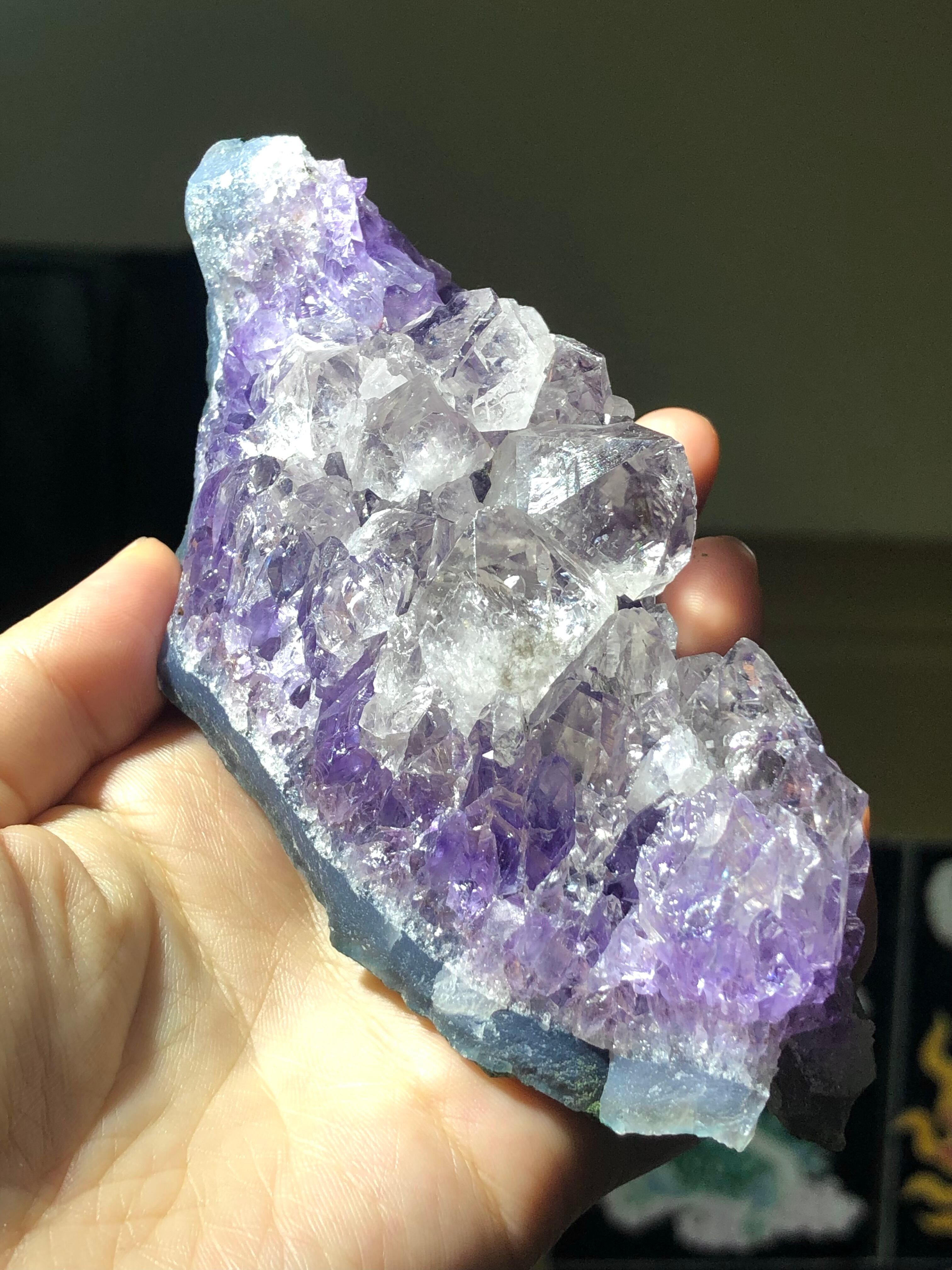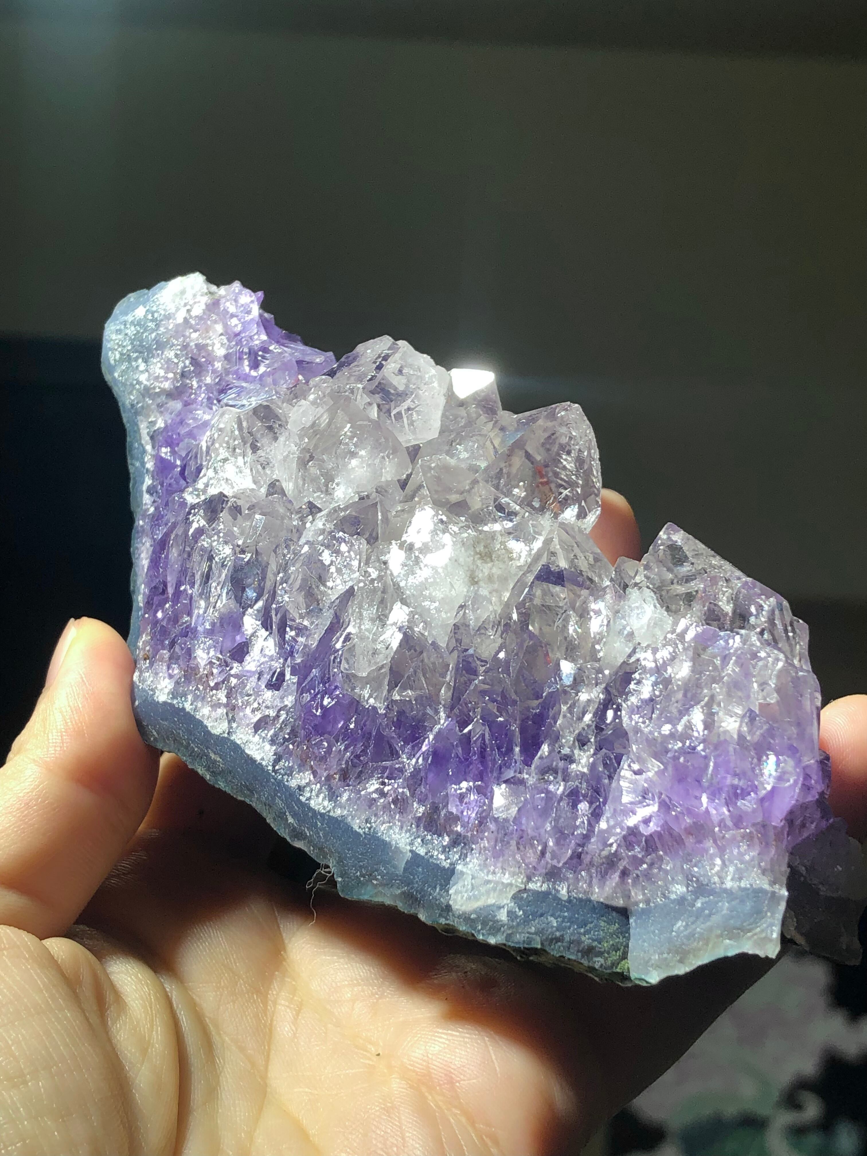 ブラジル産のアメシストはたくさん流通しているわけですが、今回の子は全体が宝石のような輝きで、透明度の高い水晶が共生しているバランスが素晴らしく、まるでデザインされたかのような美しさ。