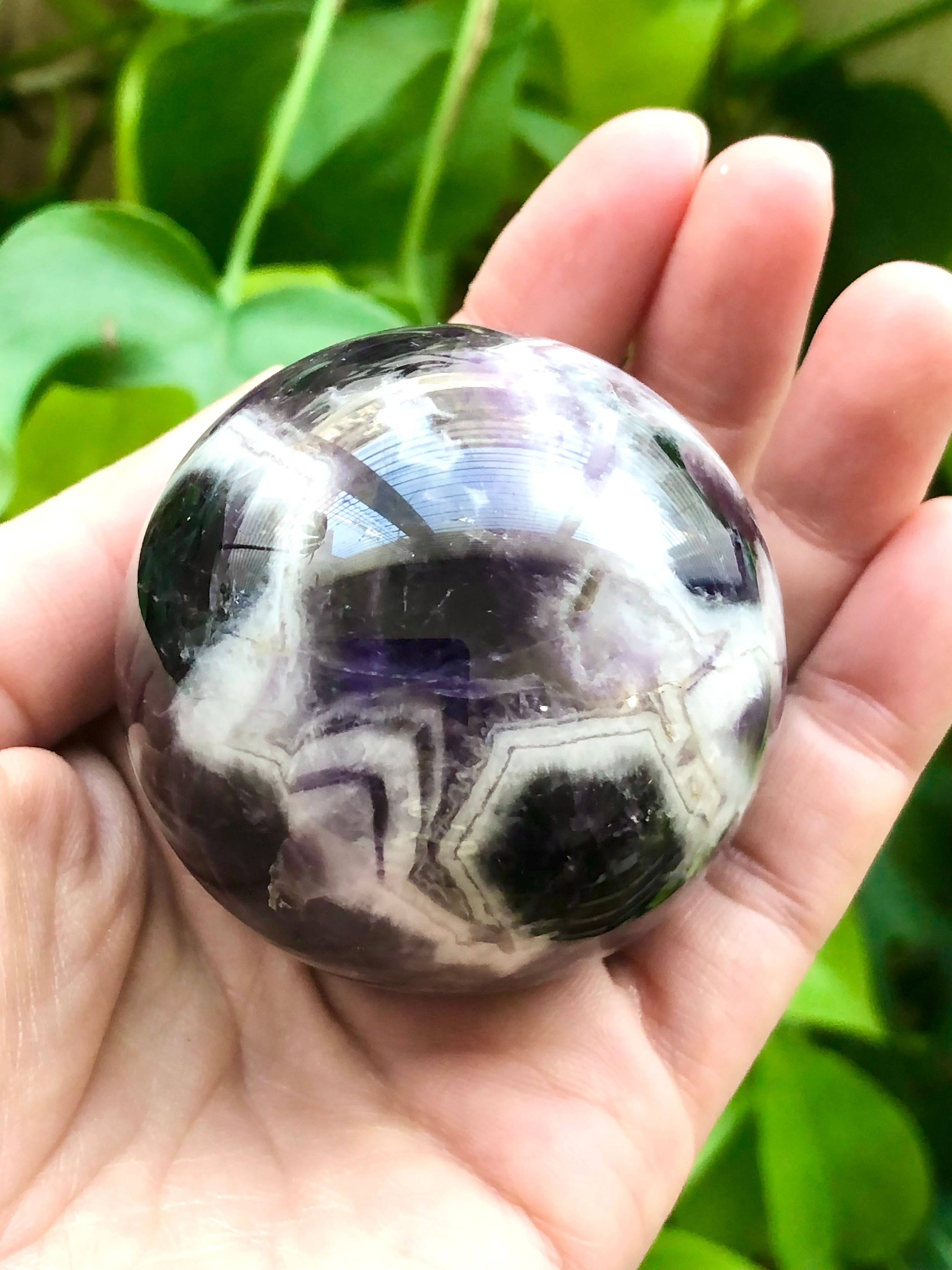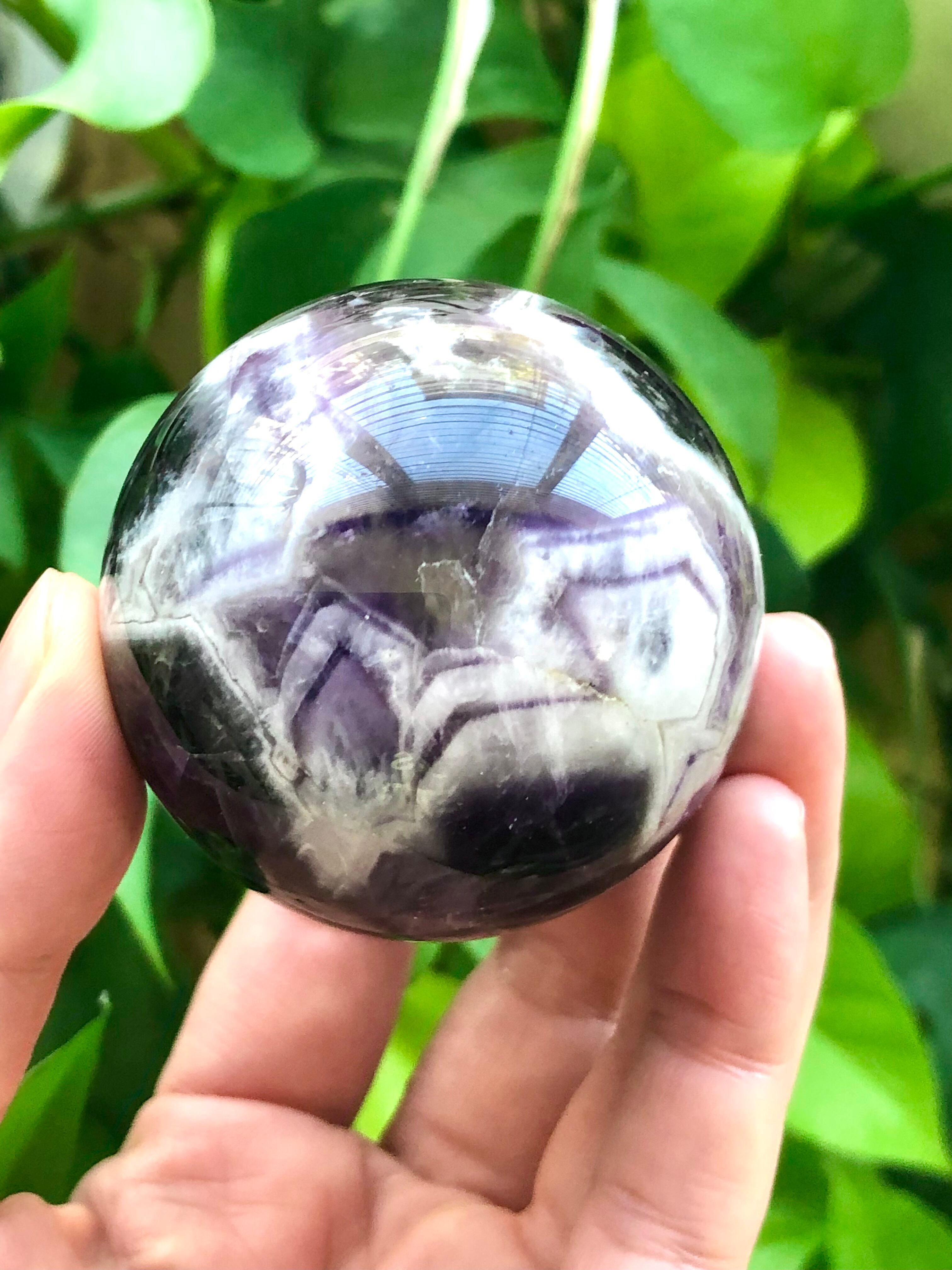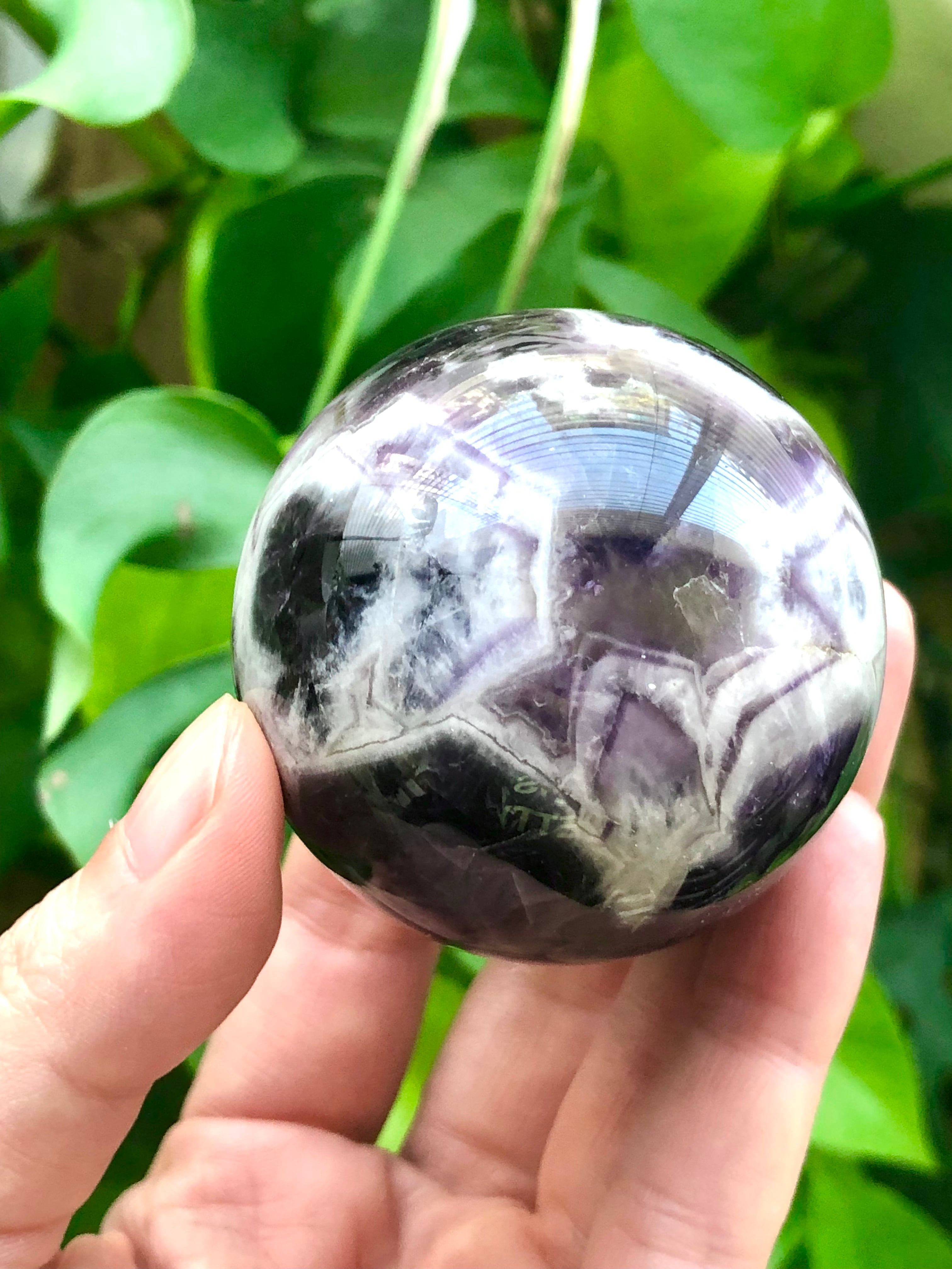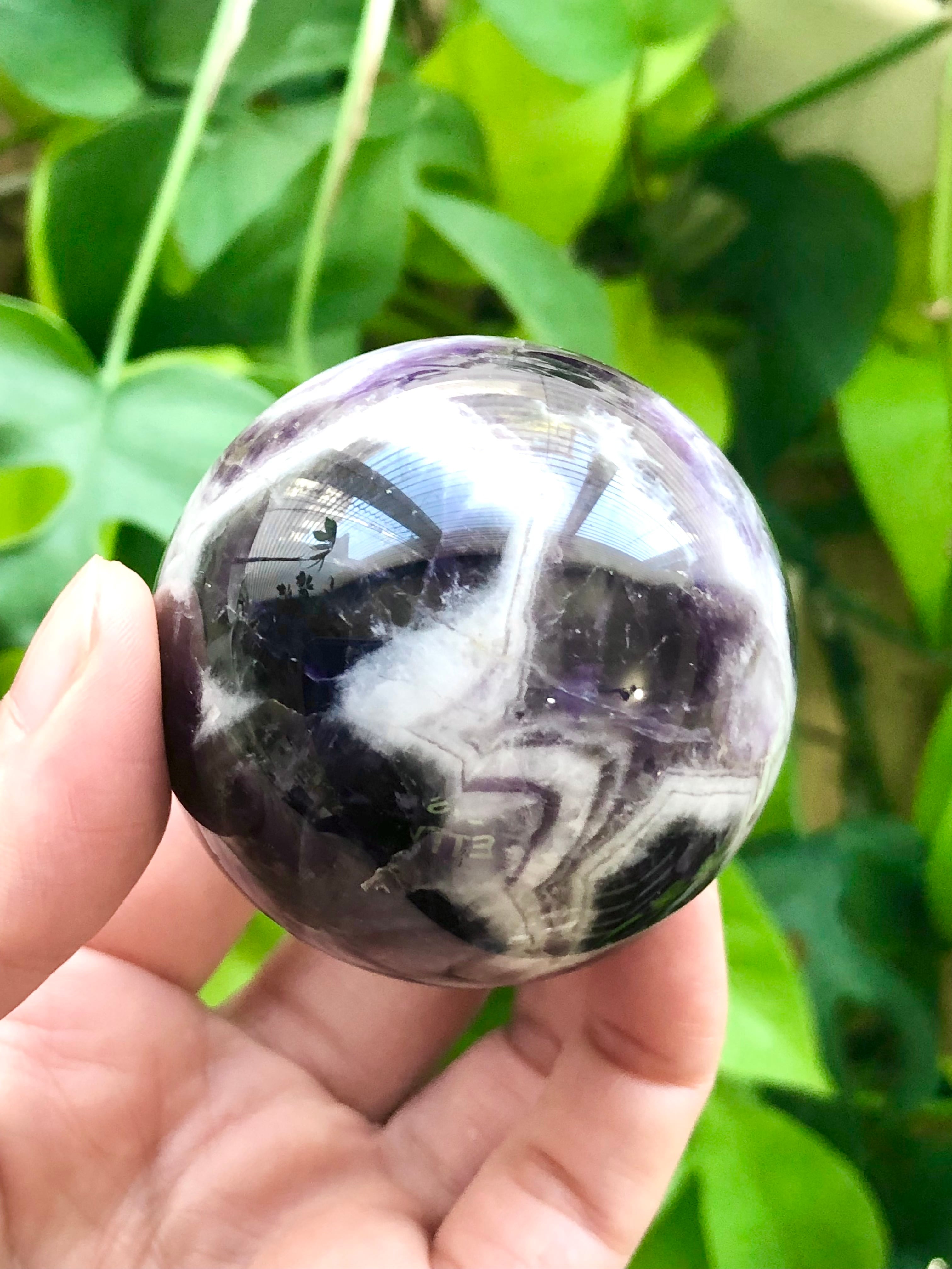 こちらはブラジル産のシェブロンアメシスト丸玉51mmです。
