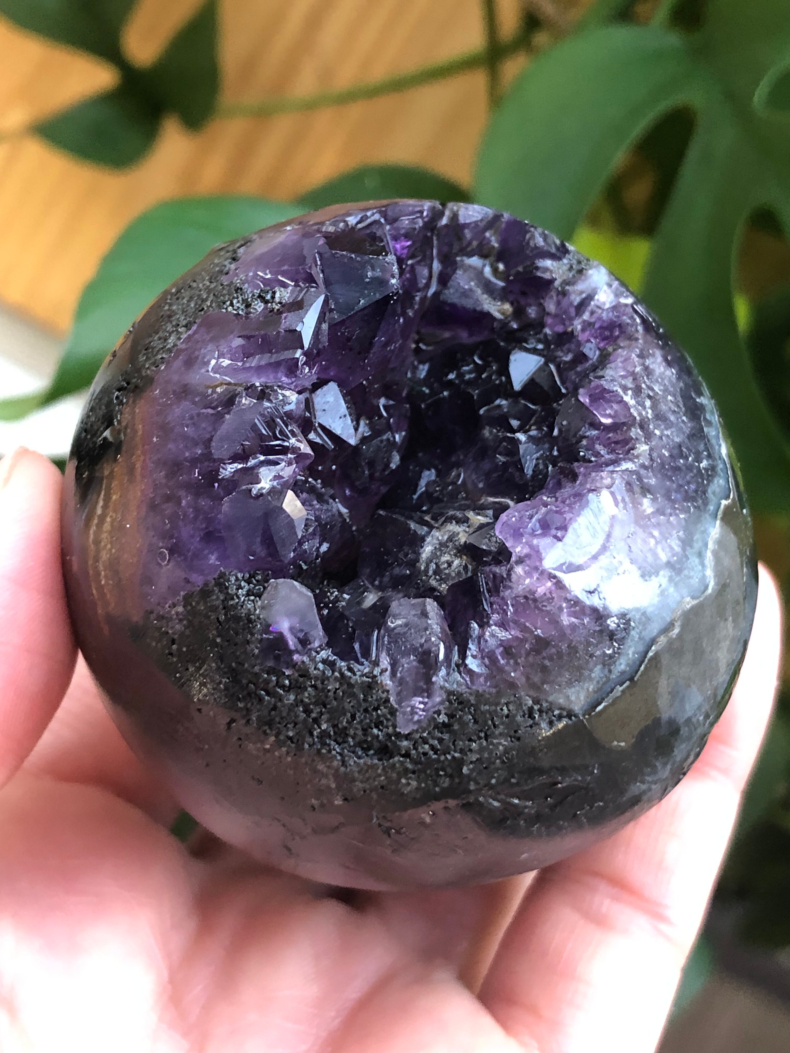 このアメシストジオードには、ご自身の中のあらゆるマイナスエネルギー、ネガティブ思考を投げかけて食べ尽くしてもらってほしいとおもいます。