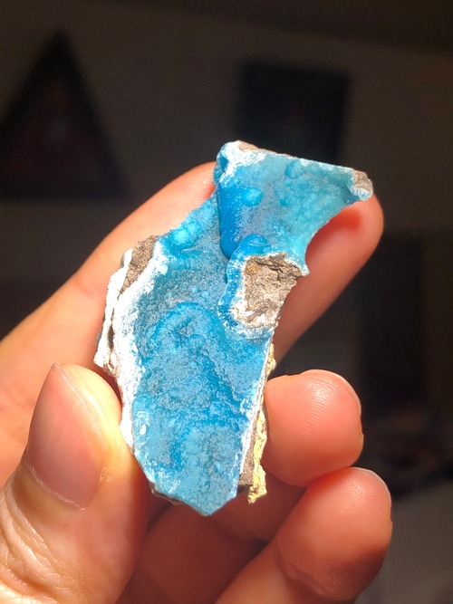 こちらは、まるで染めたかのように鮮やかなヘモミルファイト原石です。