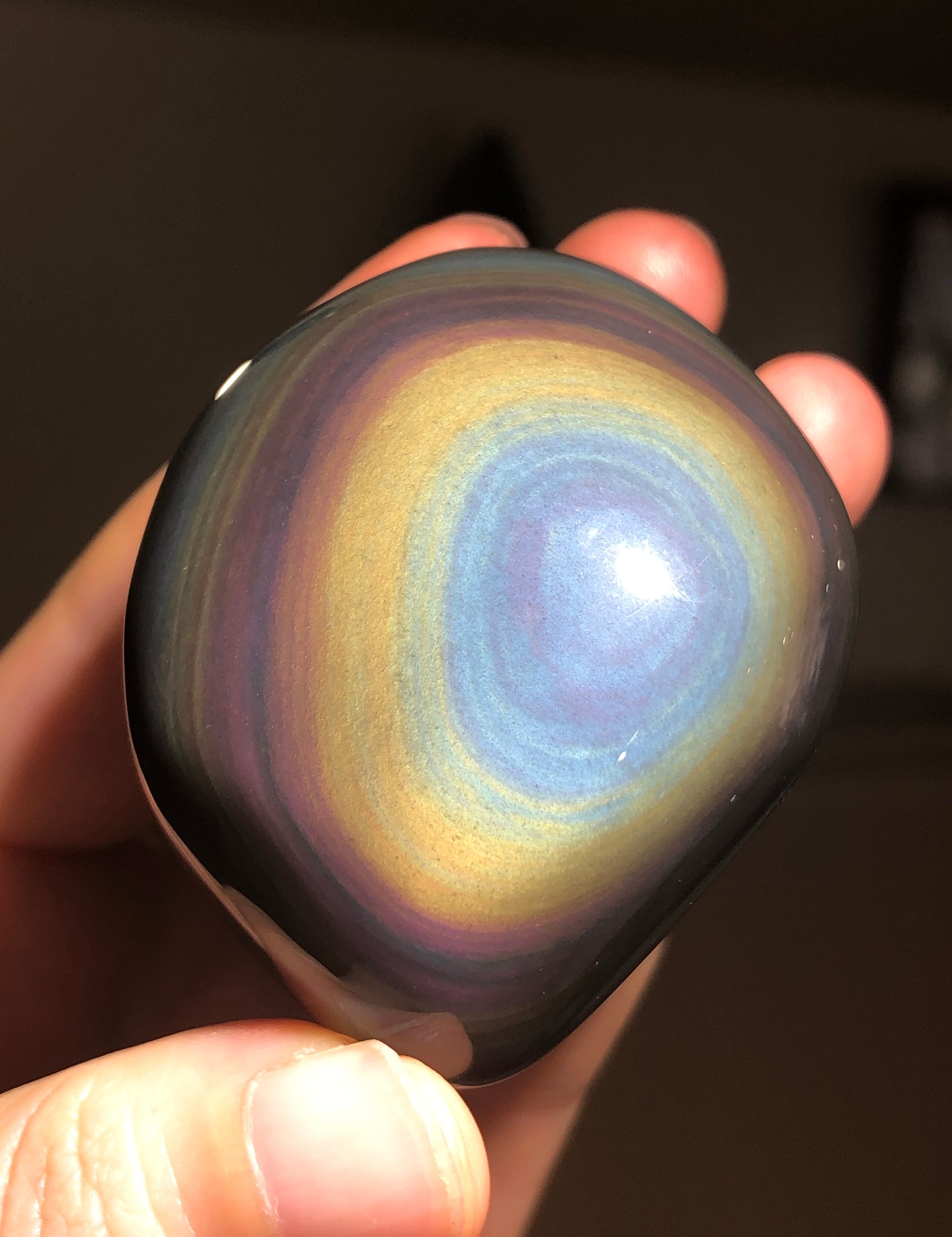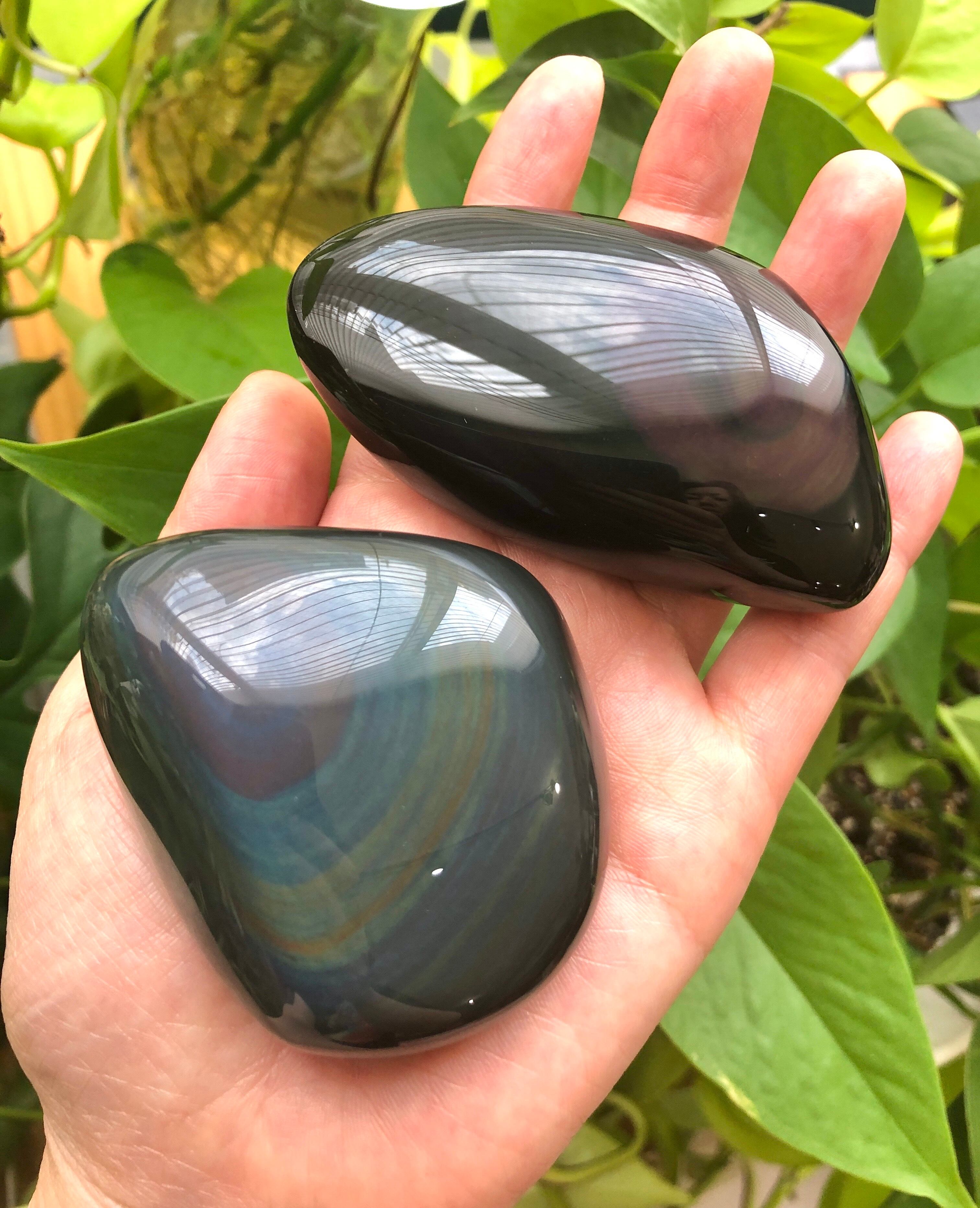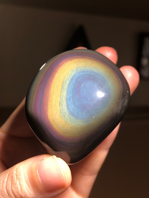 オブシディアンなので当然黒いわけですが、わたしには澄んだ湖のように見えて、そのどれもに個性的な波紋のような模様と色合いが見られて、こちらのタンブルから浮かんできたのは「呪縛の解除」。
