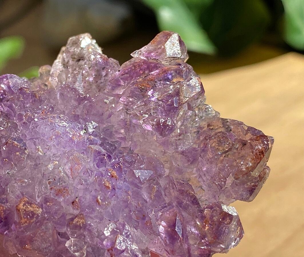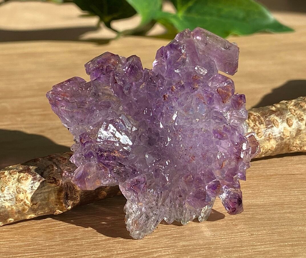 フラワーアメシストは、強い癒しの力を持ち、過去のトラウマや不安を持つ人にやすらぎのエネルギーを与えてくれると言われ、精神を鎮静化させる作用もあり、恋愛で熱しすぎた気持ちを落ち着かせたりストレスや不眠にも効果があるとも言われます。