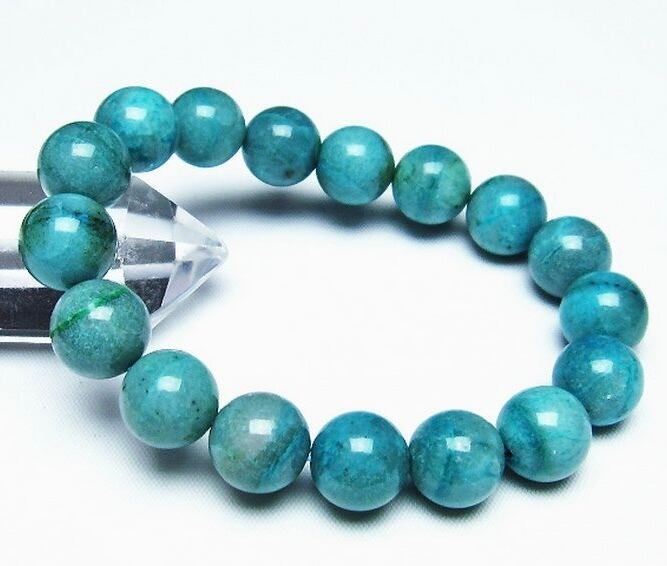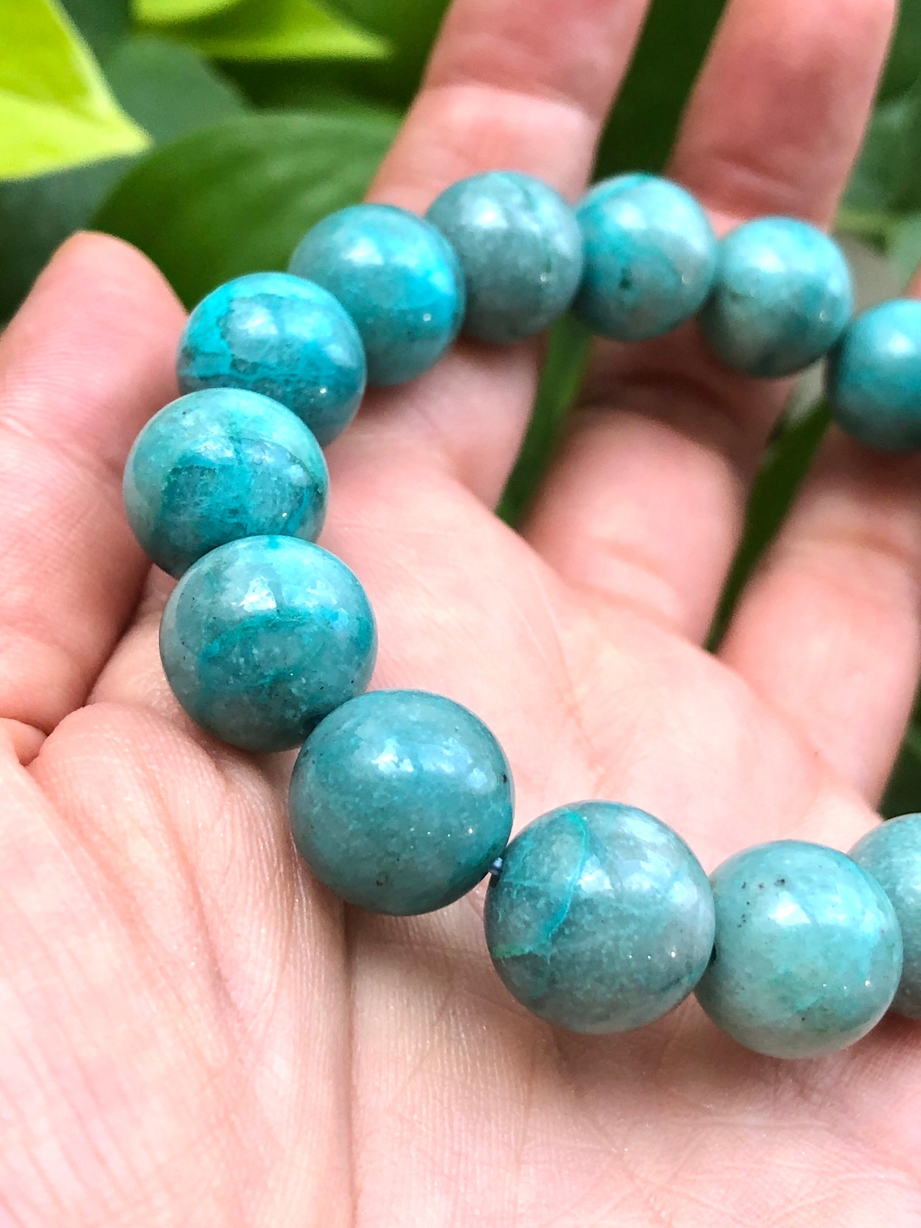 こちらはアズライト、クリソコラ、マラカイトの混ざったフェニックスストーンの12ミリ玉ブレス。