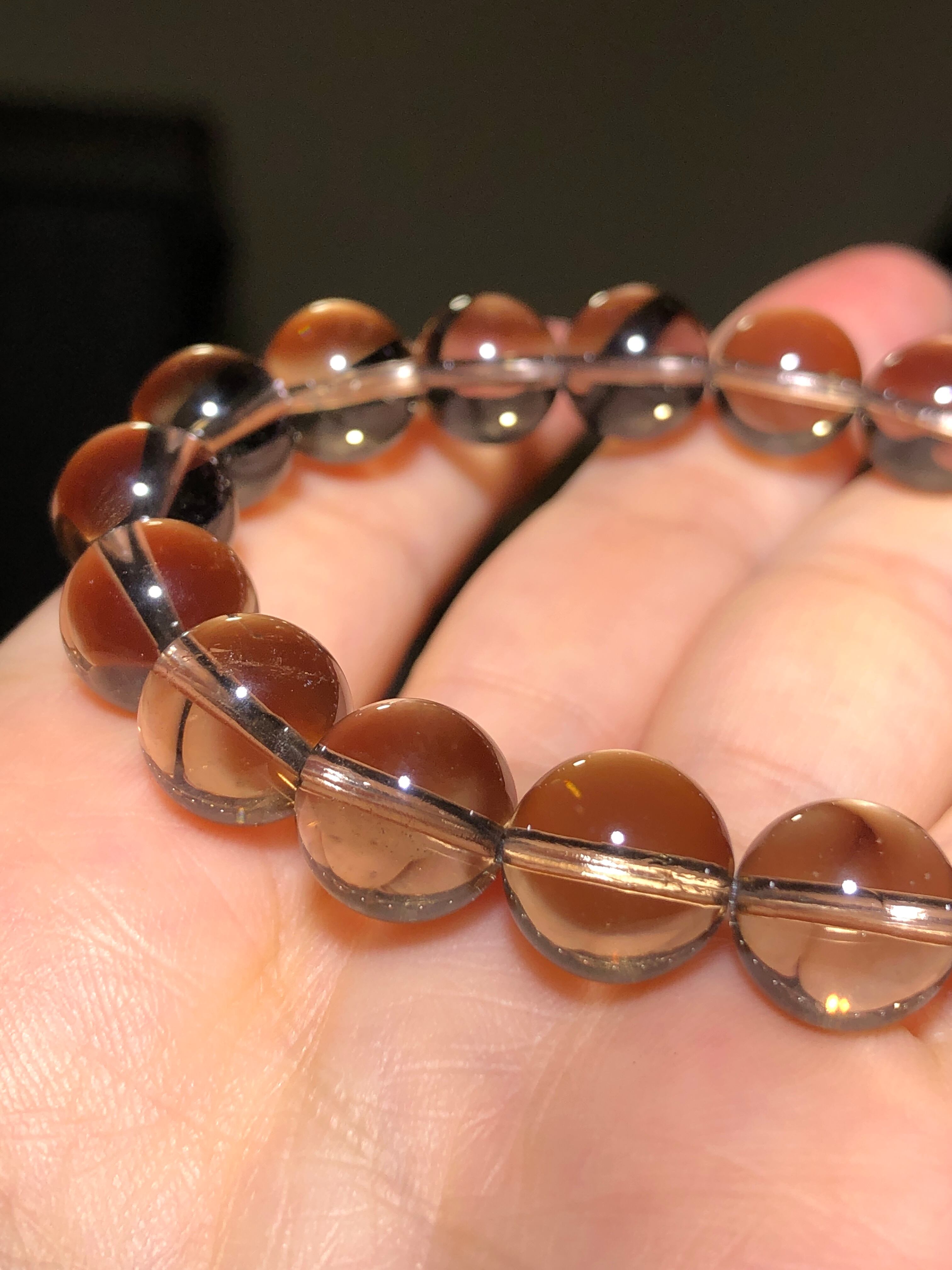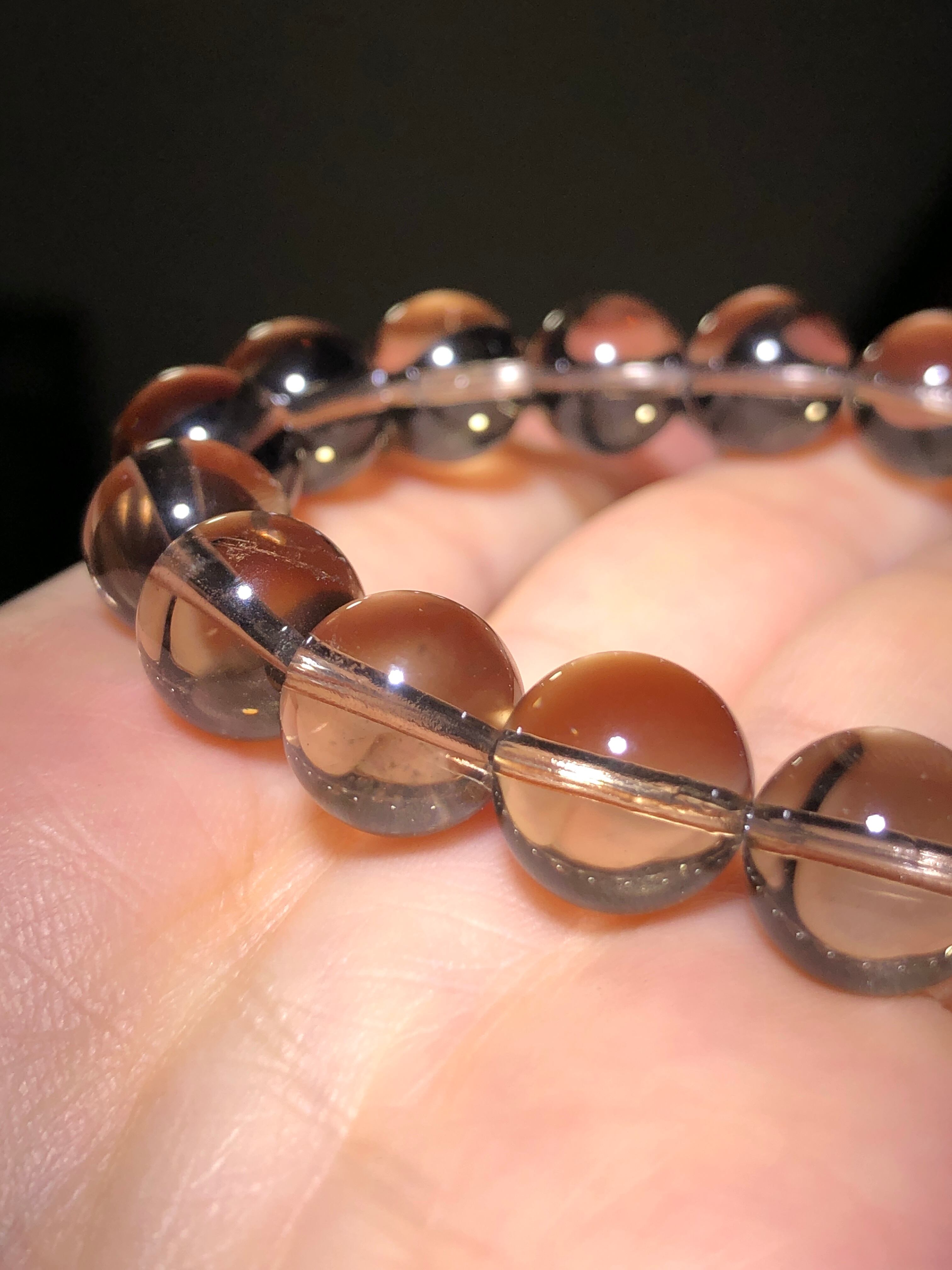 こちらはコロンビア産のスモーキークォーツ(レムリアンシード)の10ミリ玉ブレス。
