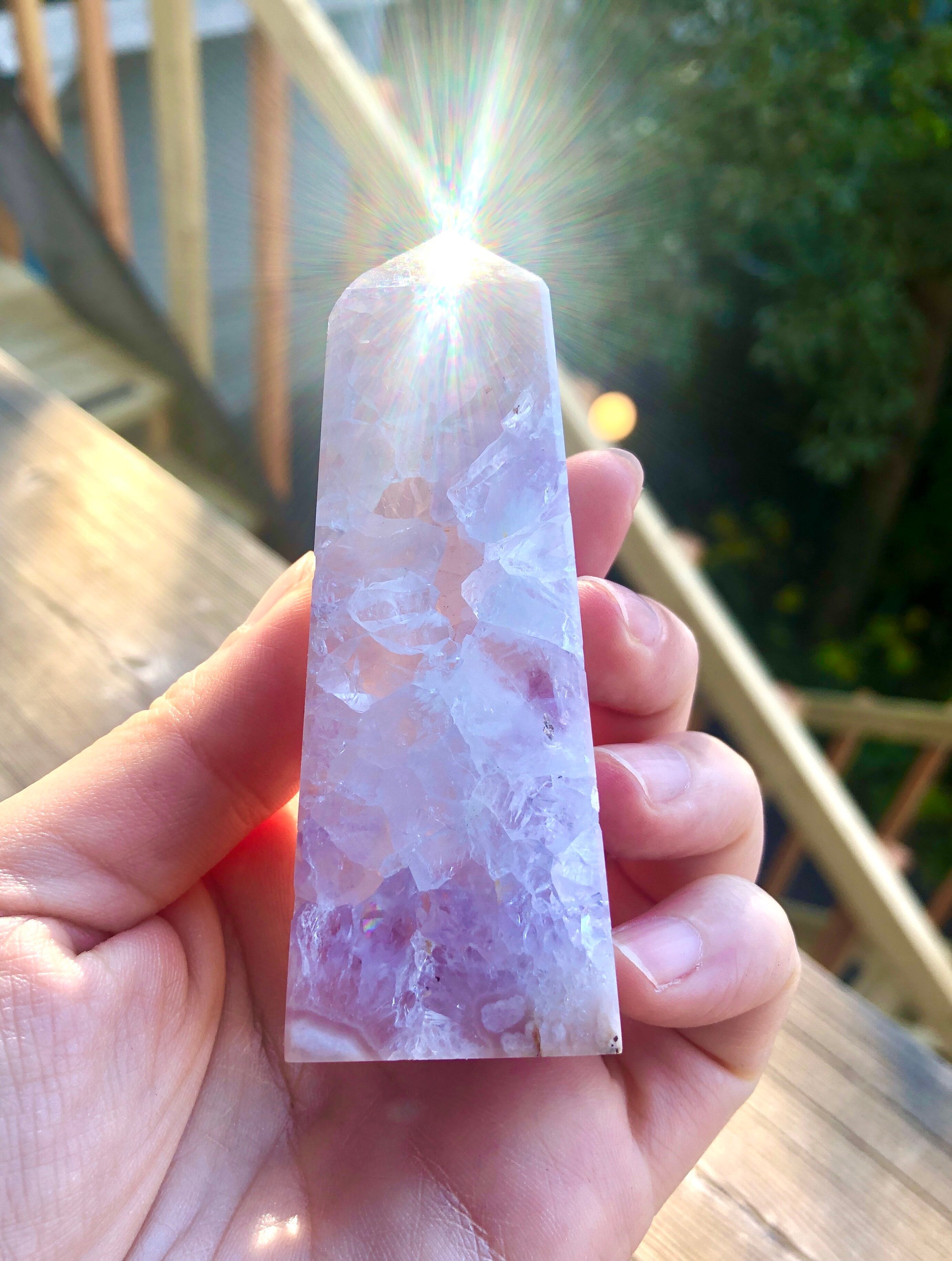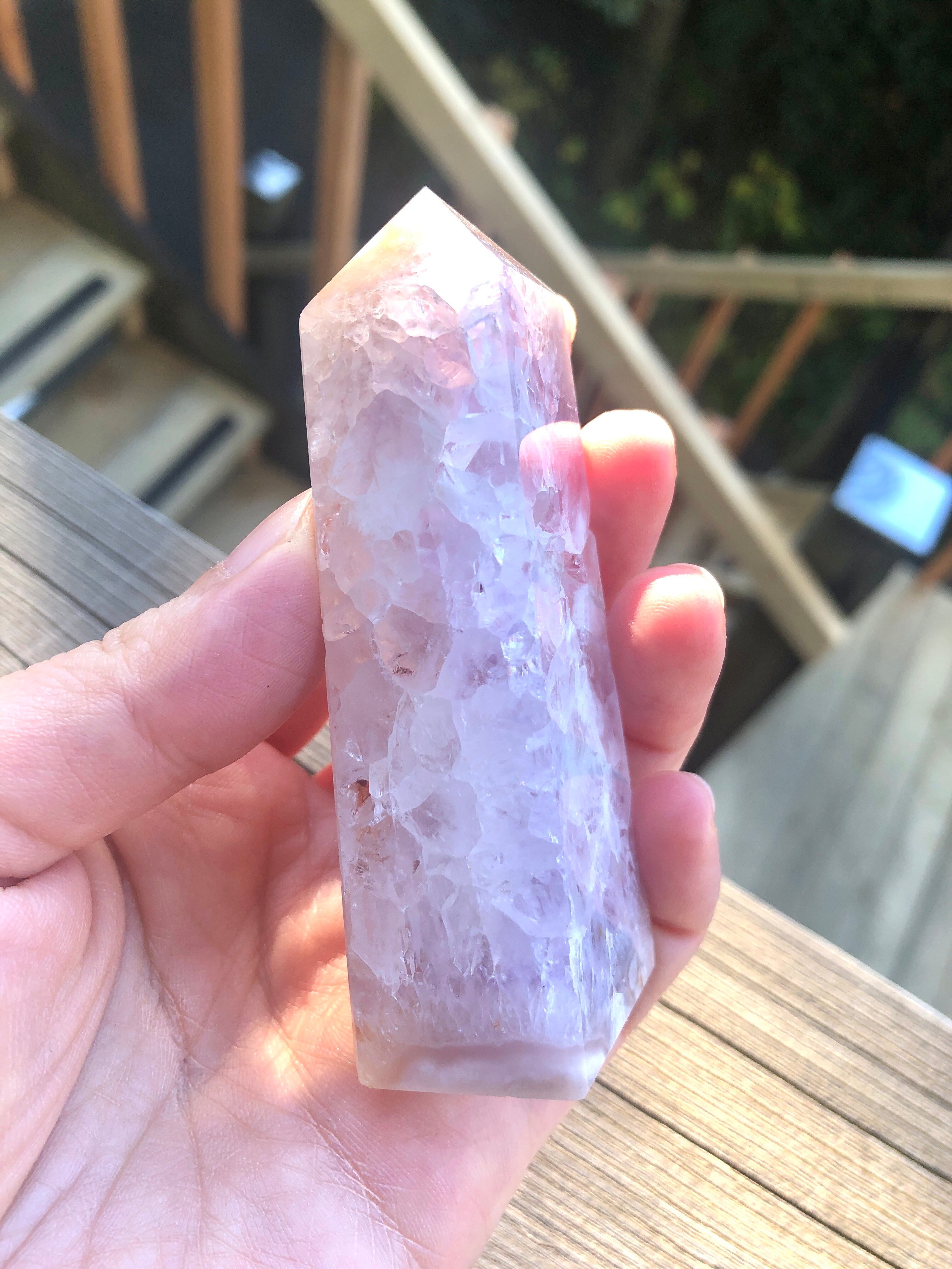 こちらはアメシストインピンクフラワーアゲートの六角柱。