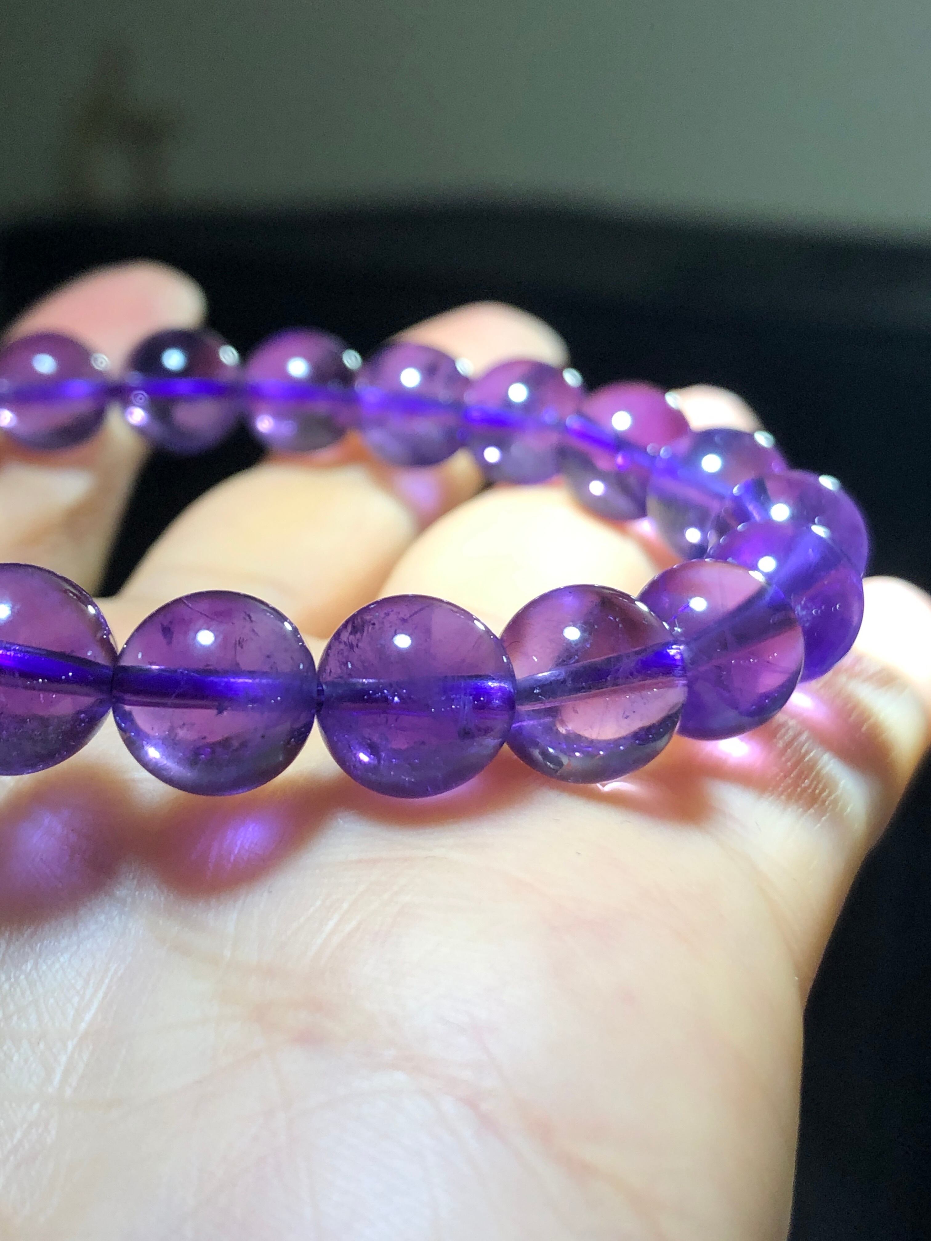 こちらはブラジル産アメシスト9ミリ玉ブレス。